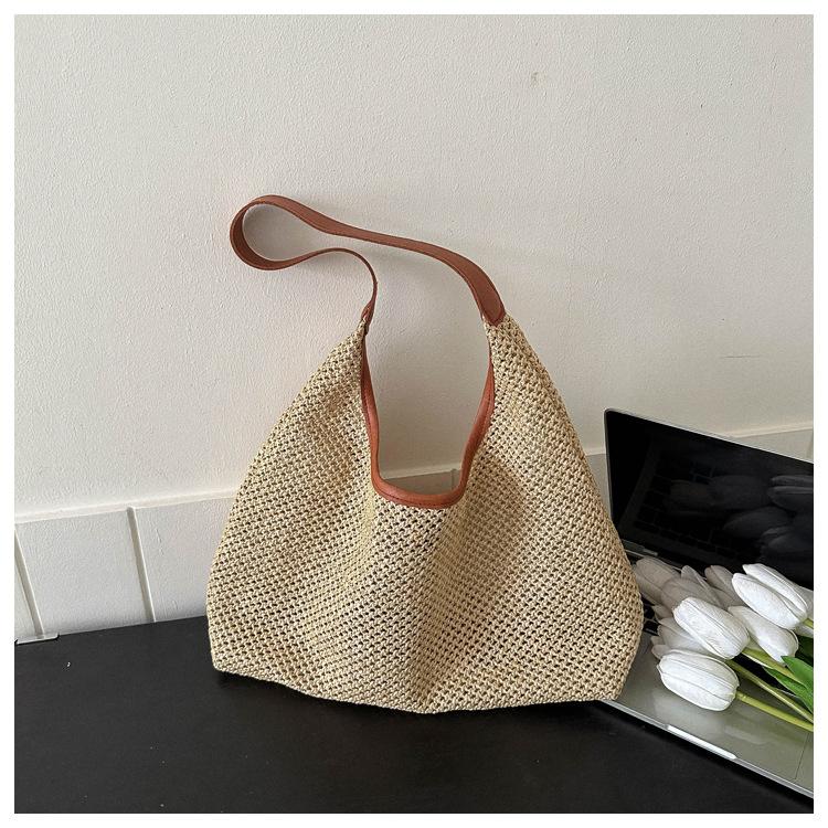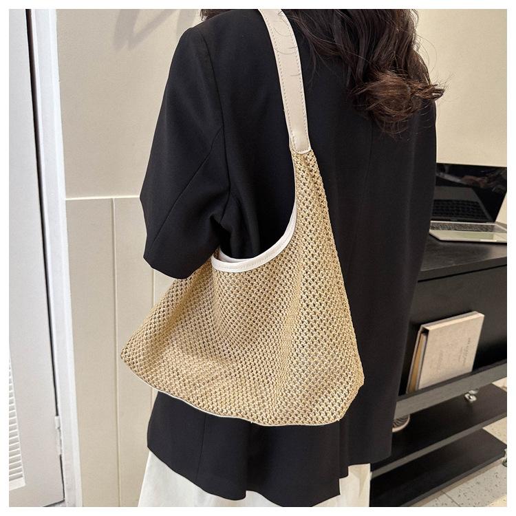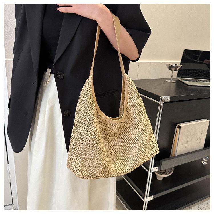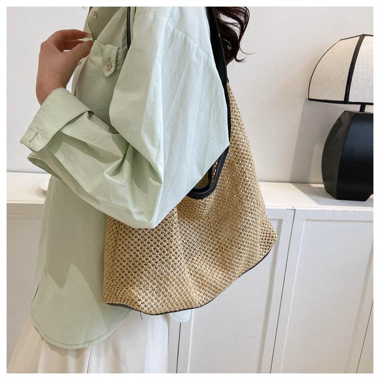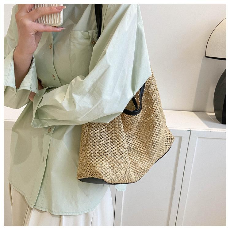 Verão Novo Popular Feminino Handheld Woven Bag elegante elegante ombro tote Bag Seaside Travel Beach Straw Woven Bag