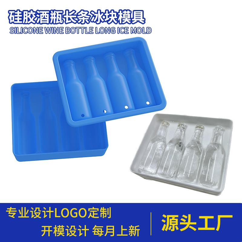 Amazon novo silicone criativo garrafa de vinho quatro grelhas longa bandeja de gelo molde whisky ice maker silicone ice cube molde