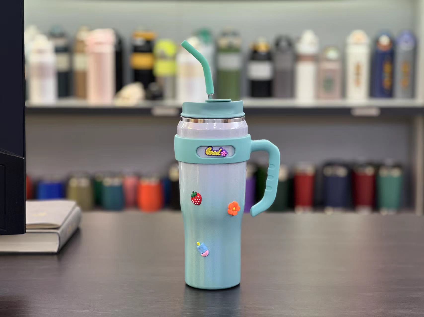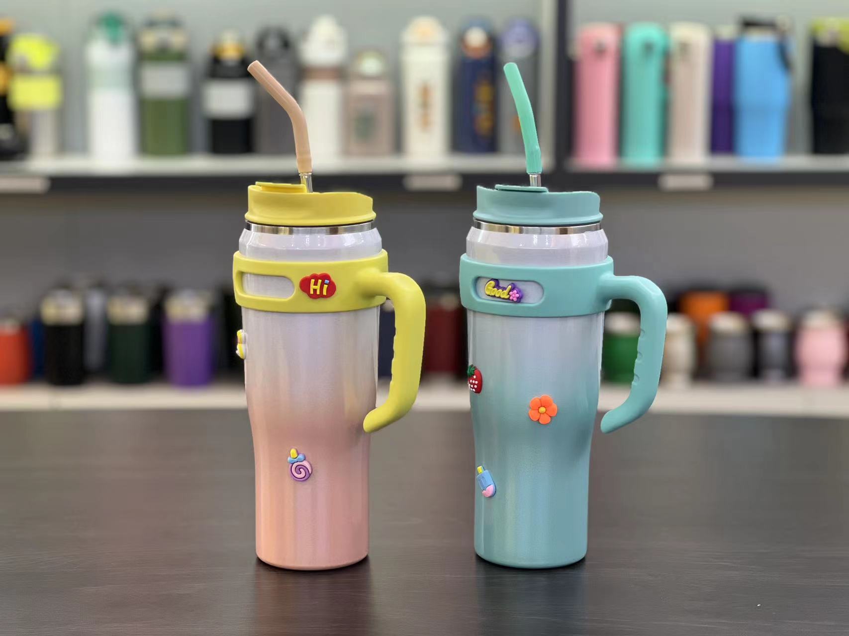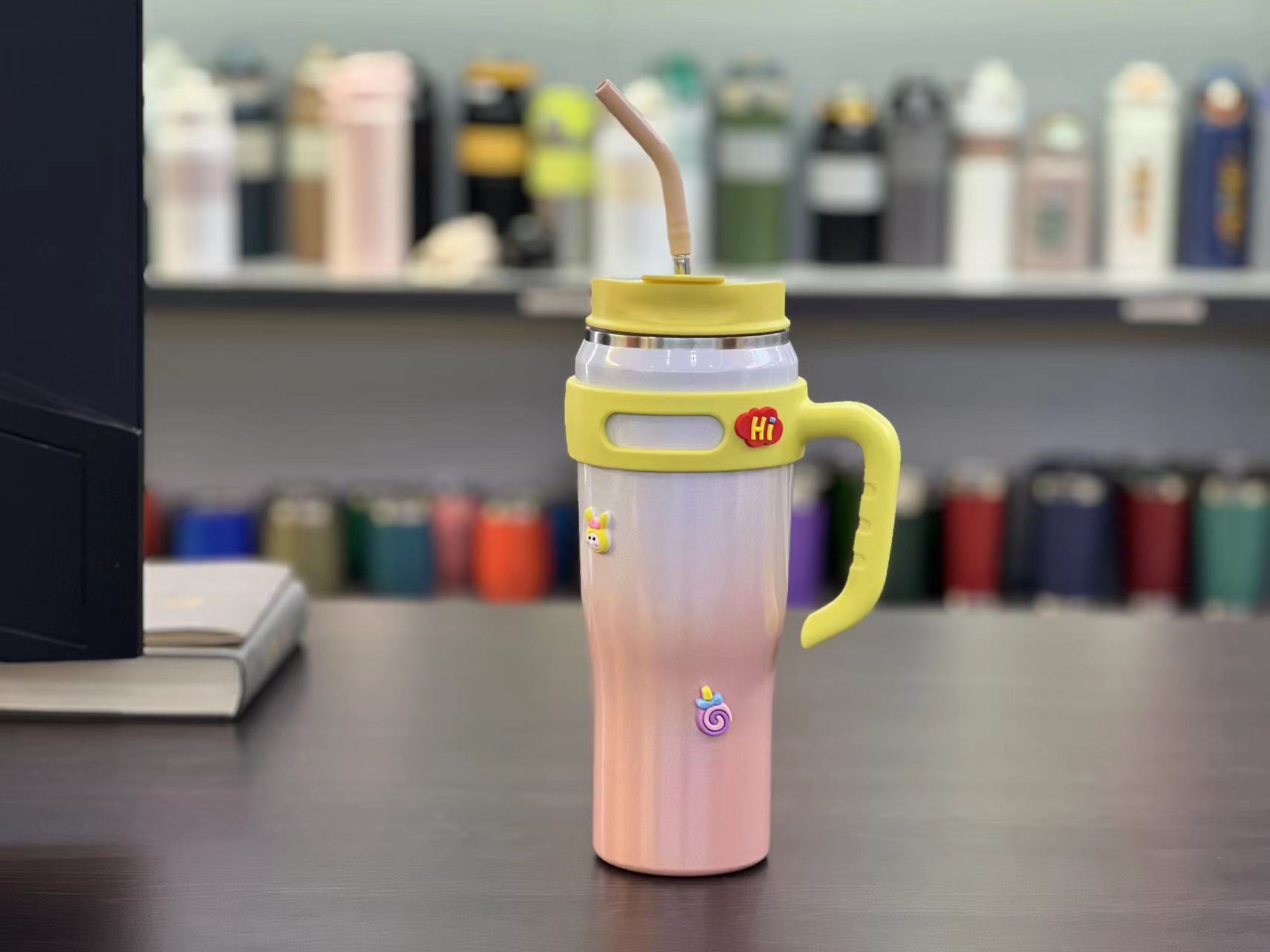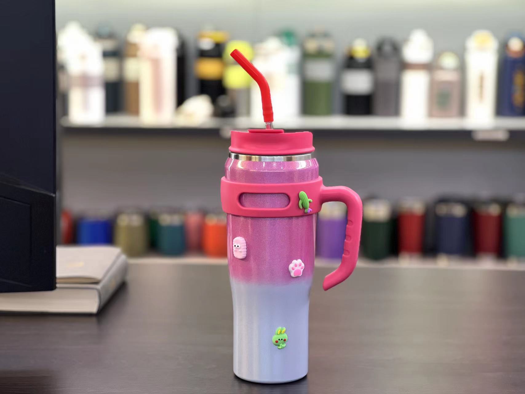 Copo de sorvete de palha de aço inoxidável 304 transfronteiriço Big Mac 40 onças copo de vácuo de grande capacidade alça de carro Copo de carro