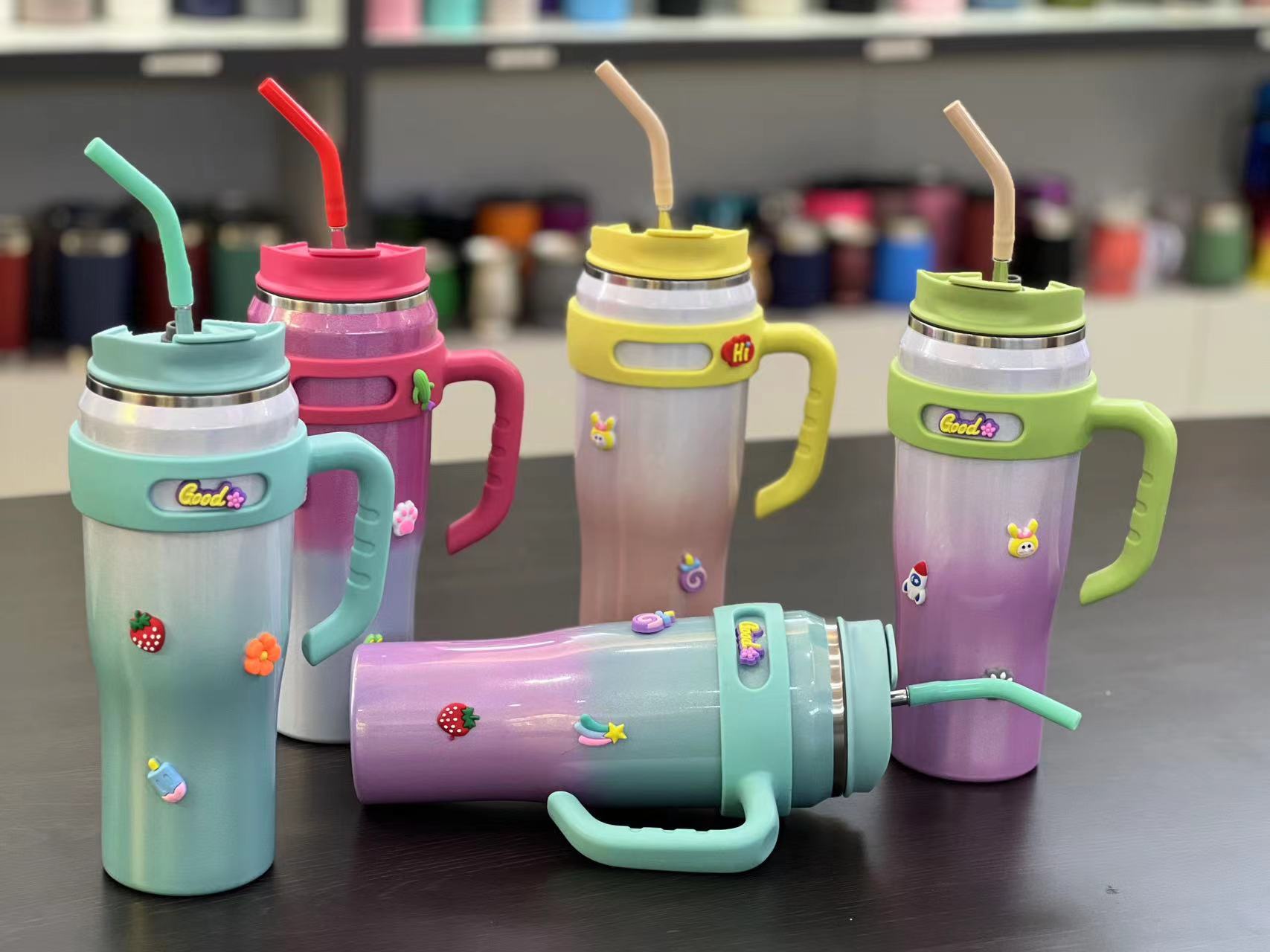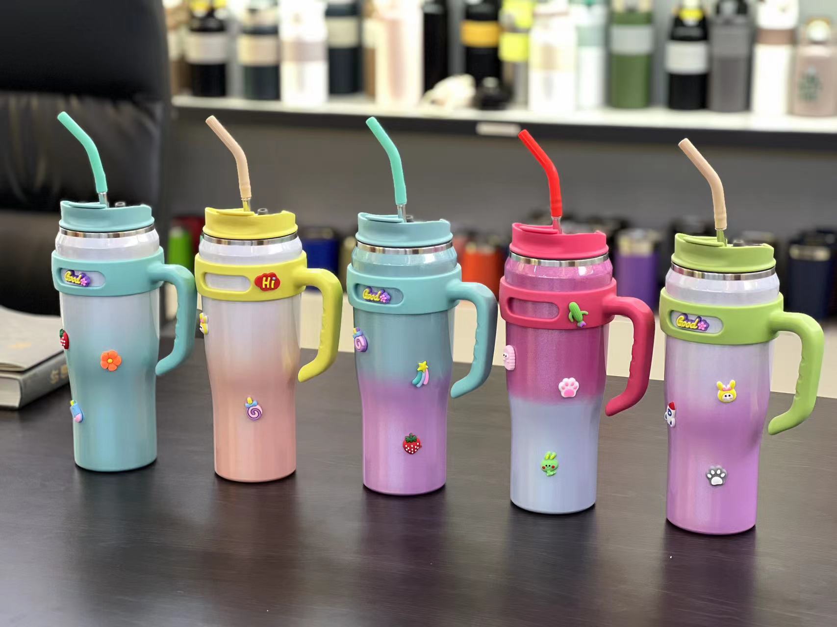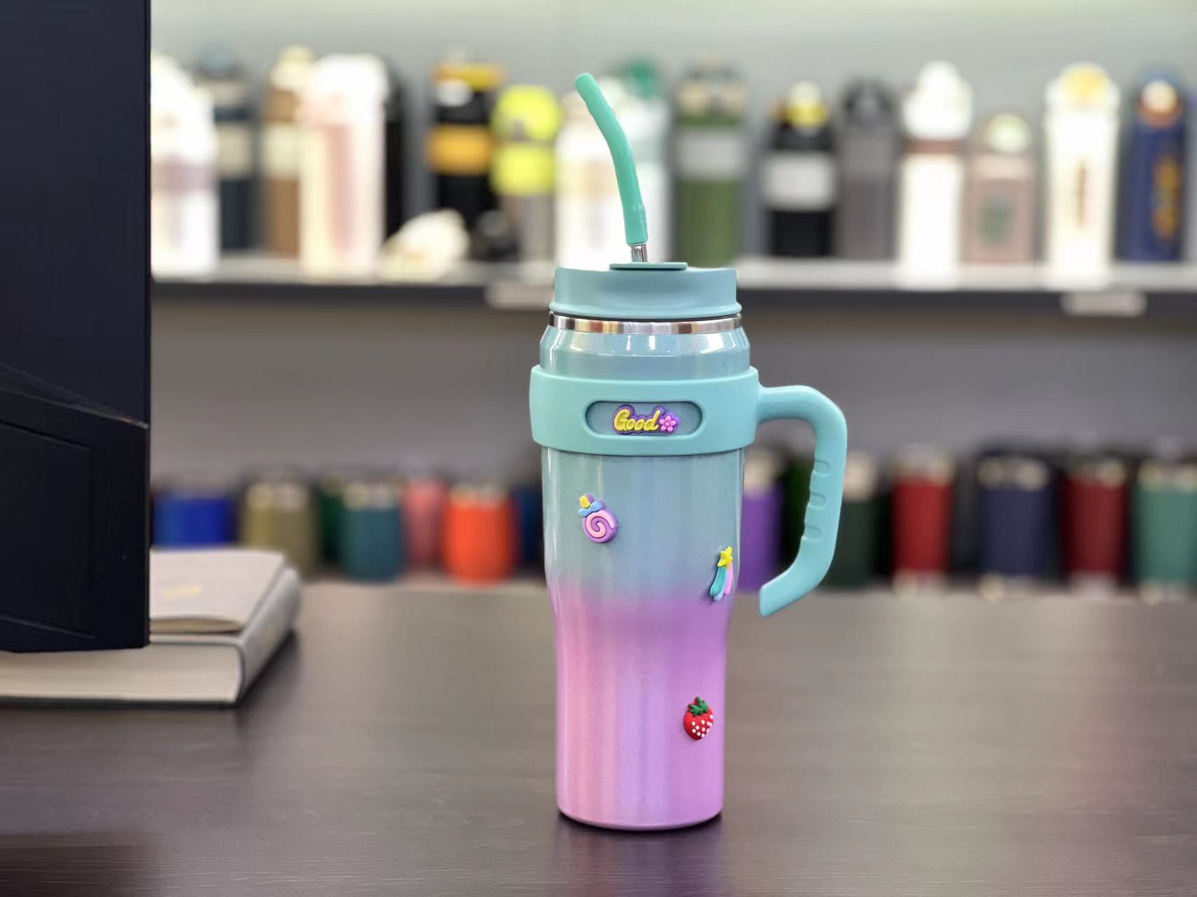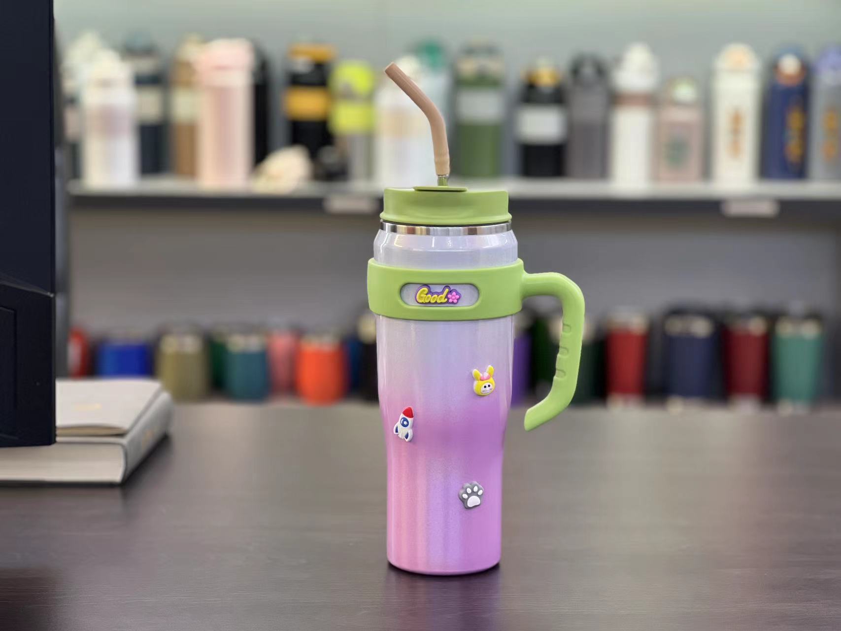 Copo de sorvete de palha de aço inoxidável 304 transfronteiriço Big Mac 40 onças copo de vácuo de grande capacidade alça de carro Copo de carro