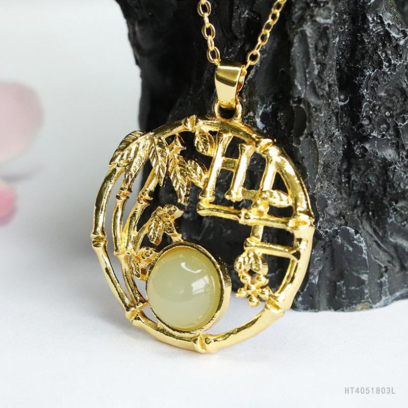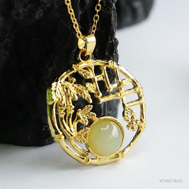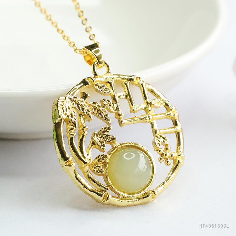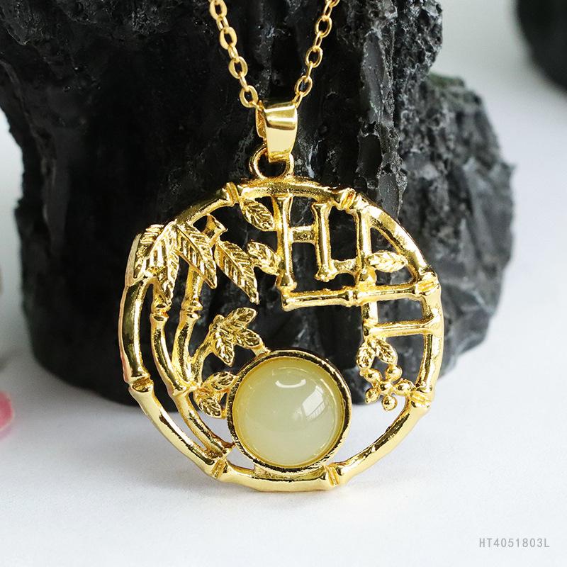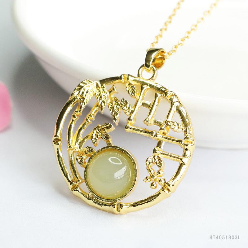 Yuyu Natural Hetian Jade Qingshui Pingente Jade Bambu Colar Novo Estilo Chinês Atacado HT4051803L