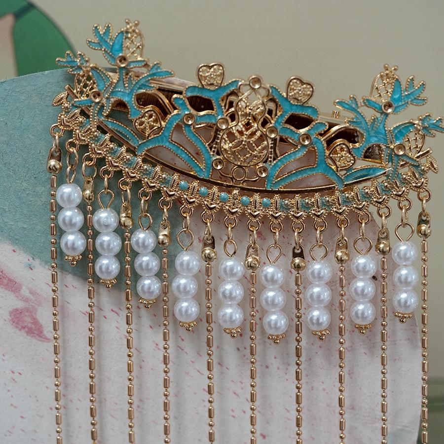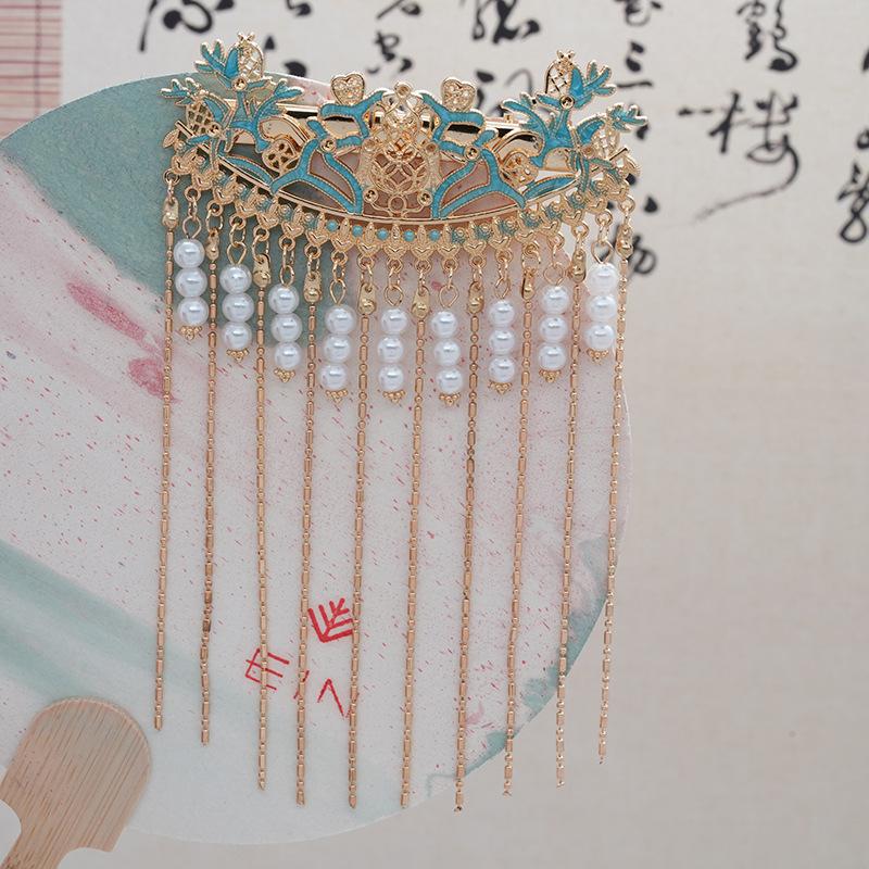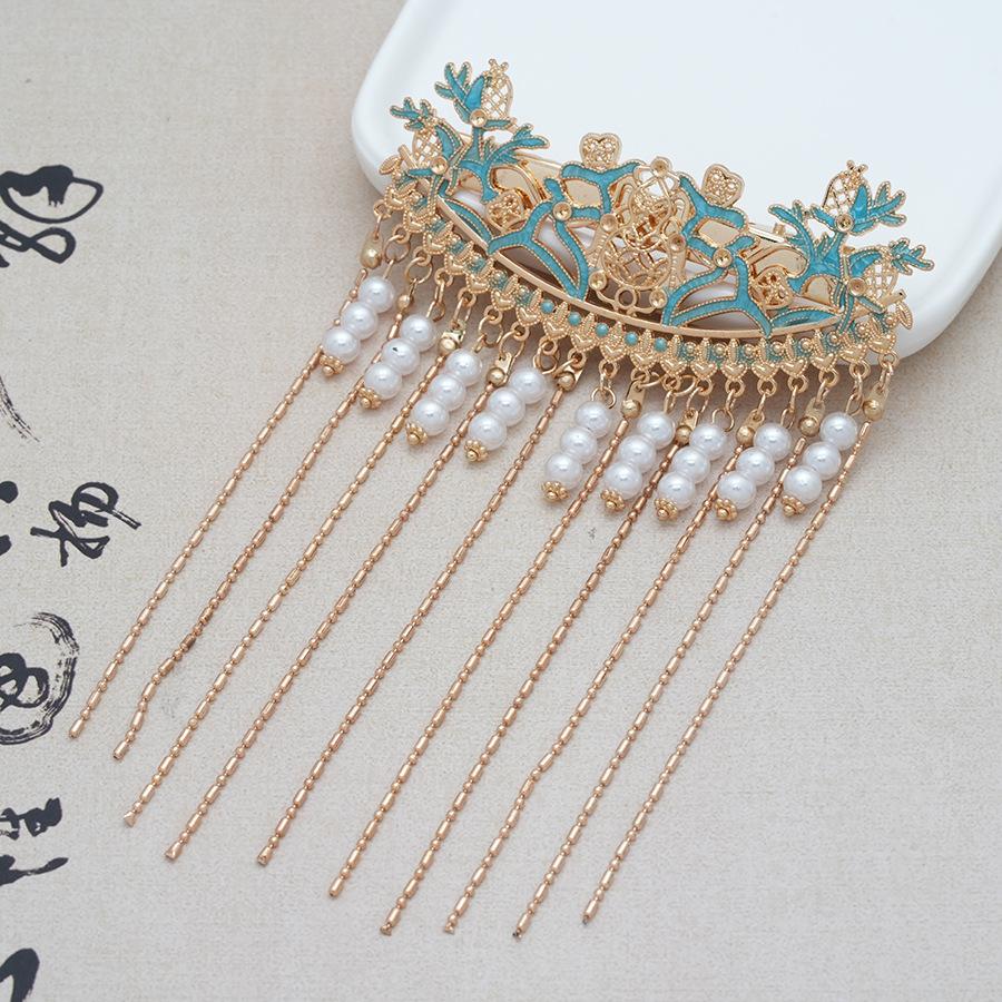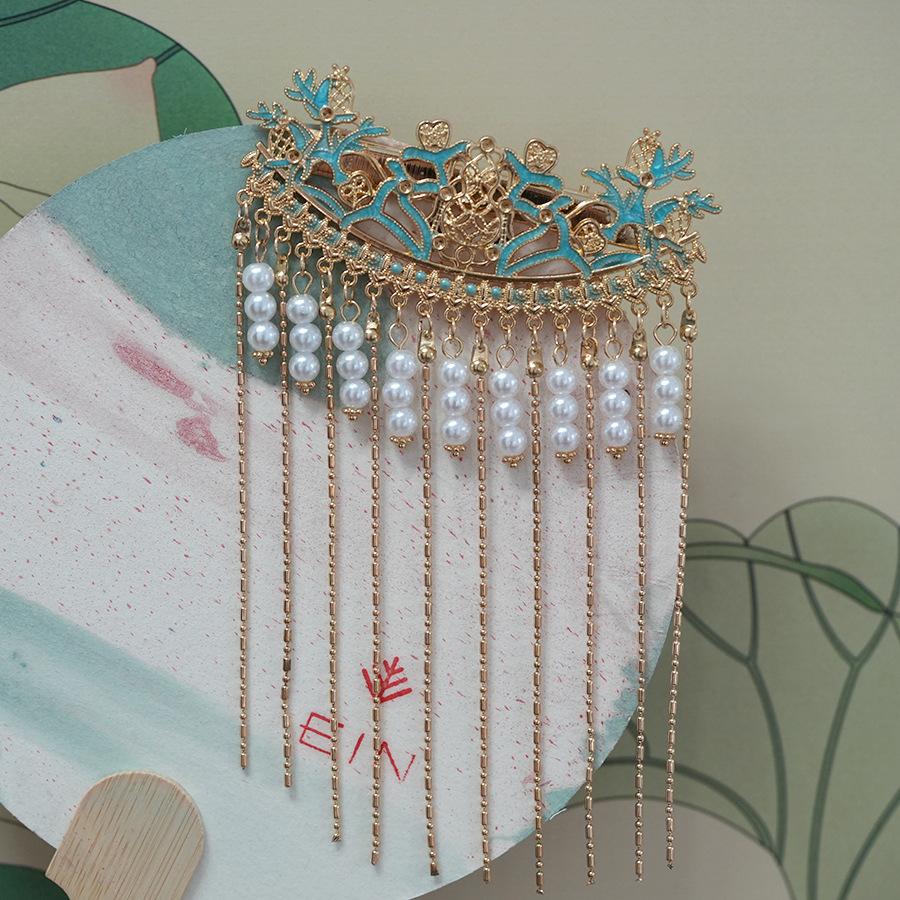 Novo Estilo Chinês Estilo Antigo Hanfu Headwear Vestido Antigo Coroa de Cabelo Pérola Hairpin Tang Estilo Gota de Óleo Cloisonne Palace Style Hairpin