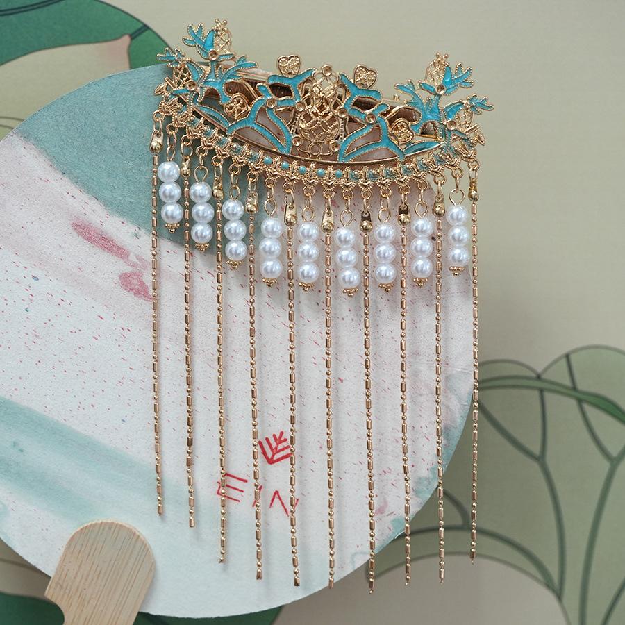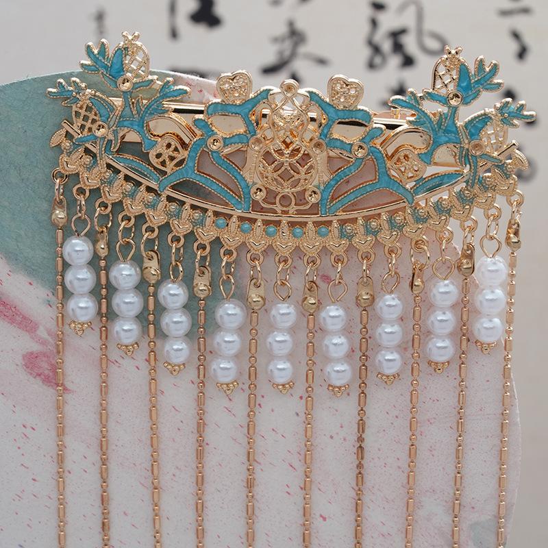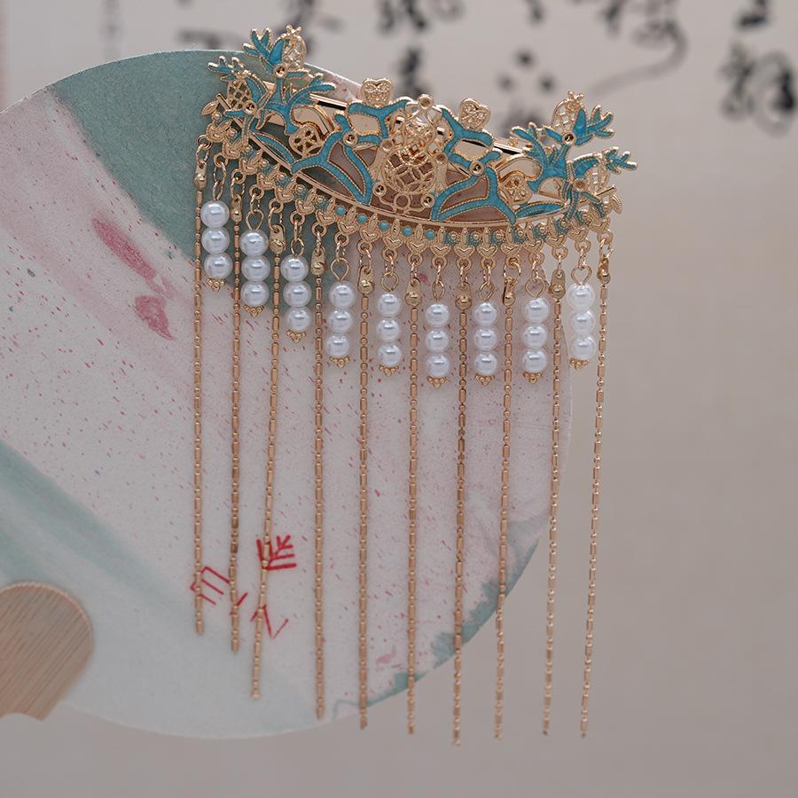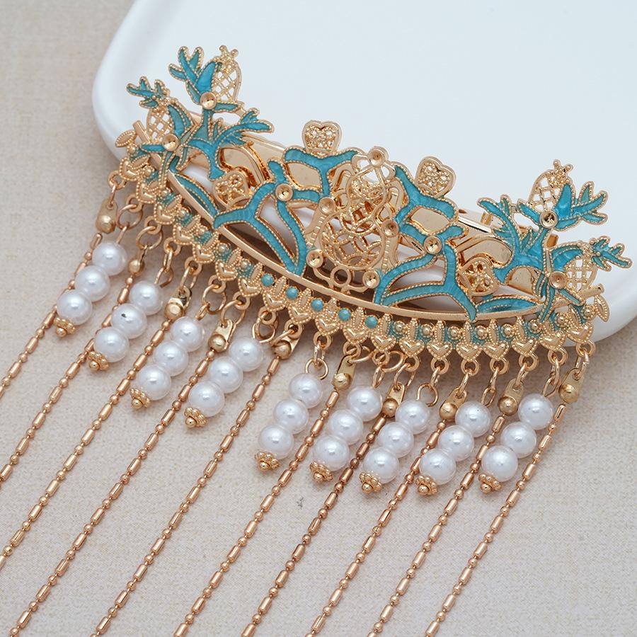 Novo Estilo Chinês Estilo Antigo Hanfu Headwear Vestido Antigo Coroa de Cabelo Pérola Hairpin Tang Estilo Gota de Óleo Cloisonne Palace Style Hairpin
