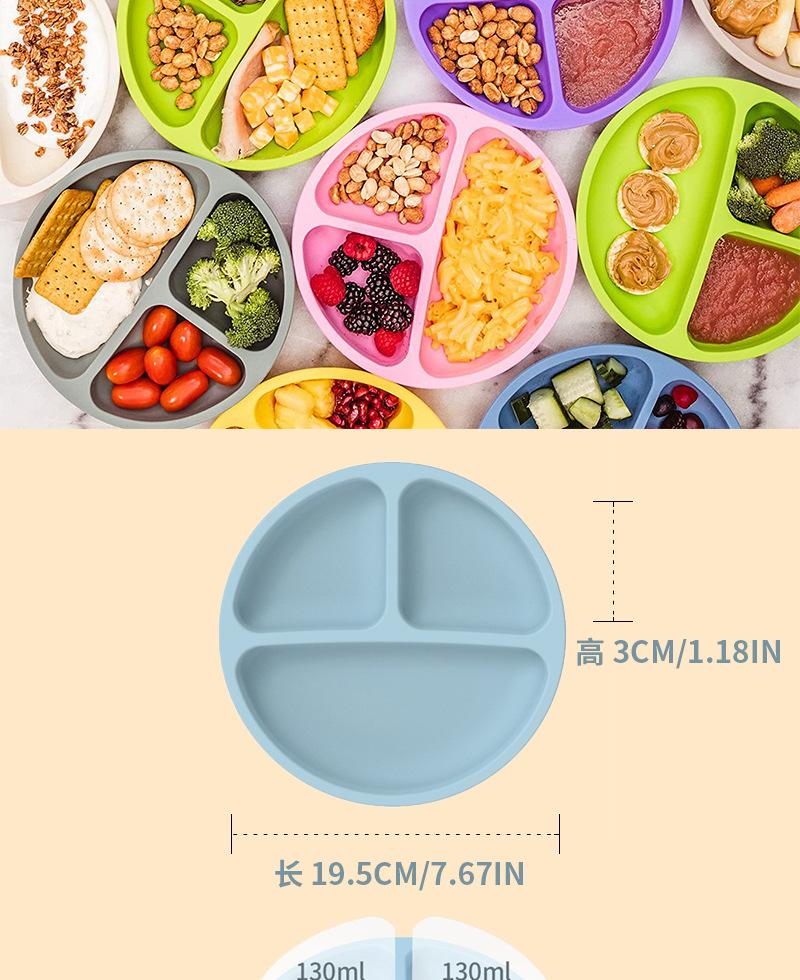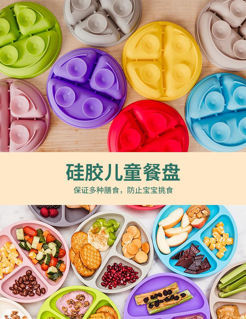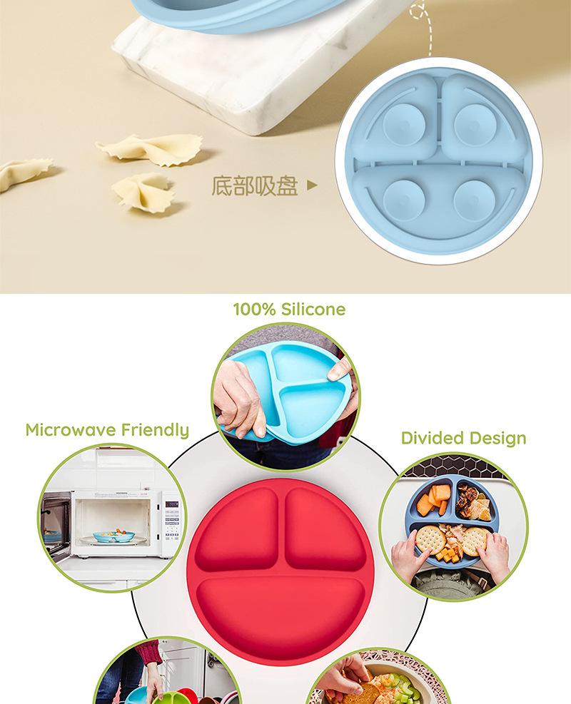 Amazon Explosions Prato de jantar de silicone infantil Talheres de alimentação infantil Suplementos alimentares para bebês Split Sucker Smiley Prato de jantar