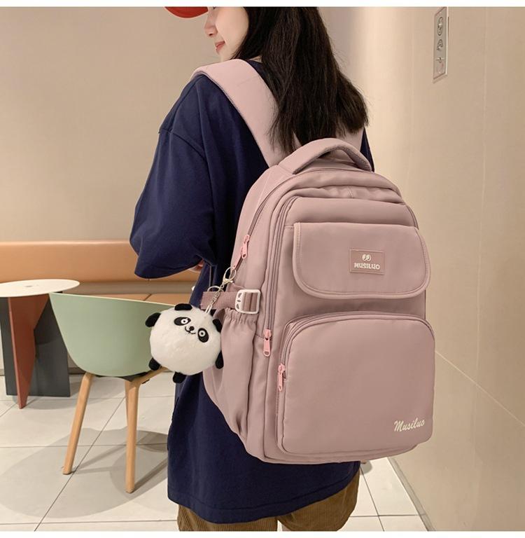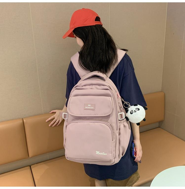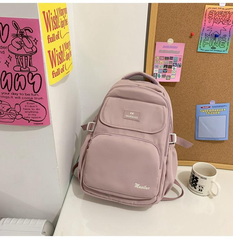 Mochila de estudante de cor sólida simples mochila estilo campus de grande capacidade mochila de viagem casual de moda