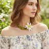 ZA Fresh Holiday Style Beaded Tridimensional Grande Flor Clavícula Corrente Europeia e Americana Tecido à Mão Resina Flor Colar para Mulheres