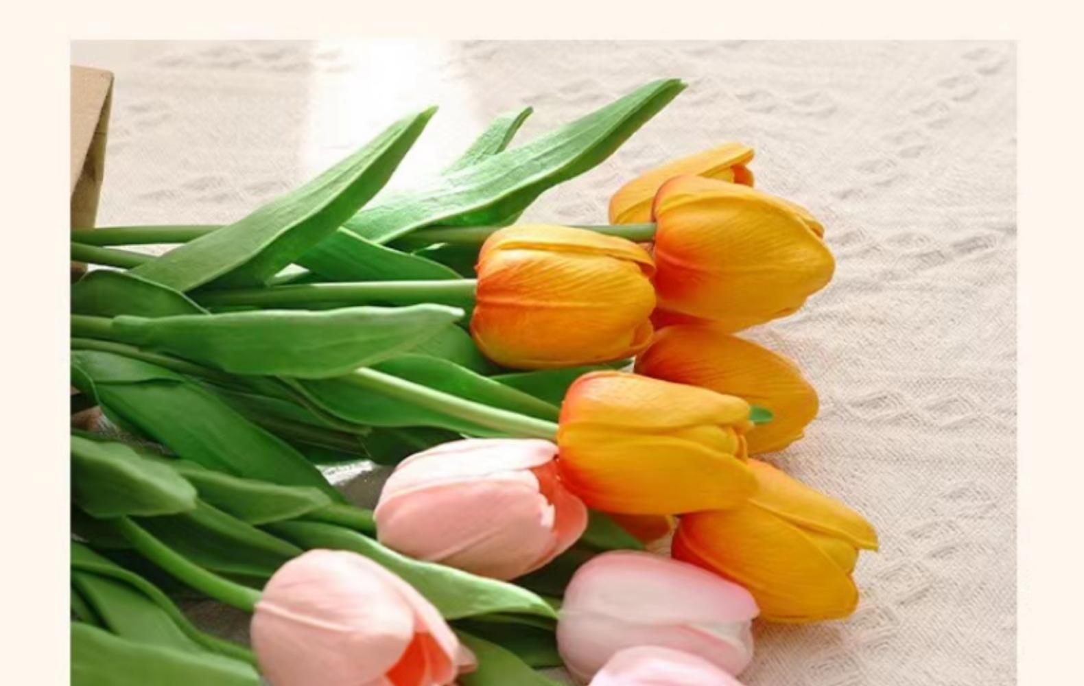 Compre Tulipa Toque PU Classy Flor Artificial Paisagismo Casa Sala de Estar Decoração Restaurante Vaso Conjunto Casamento Ensaio no atacado no Joom.pro