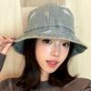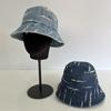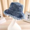 Chapéu de Pescador Jeans 2025 Novo Estilo Coreano Barra Desfiada Lavado Retrô Chapéu Balde Primavera e Verão Proteção Solar ao Ar Livre Chapéu de Sol Atacado