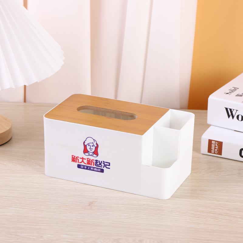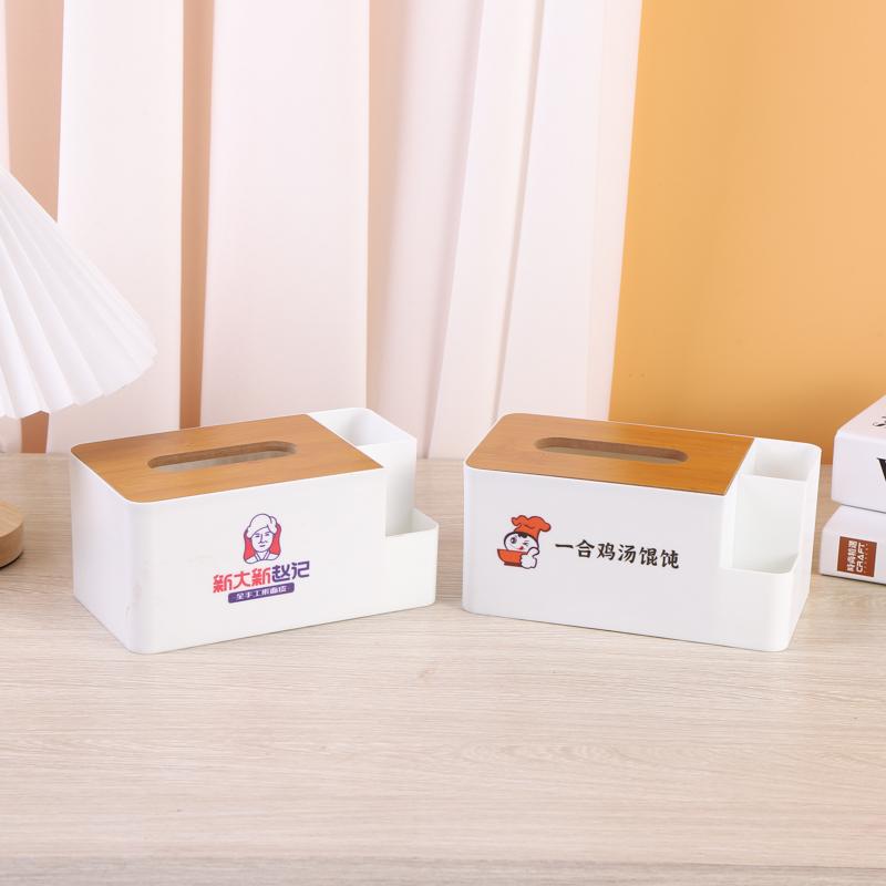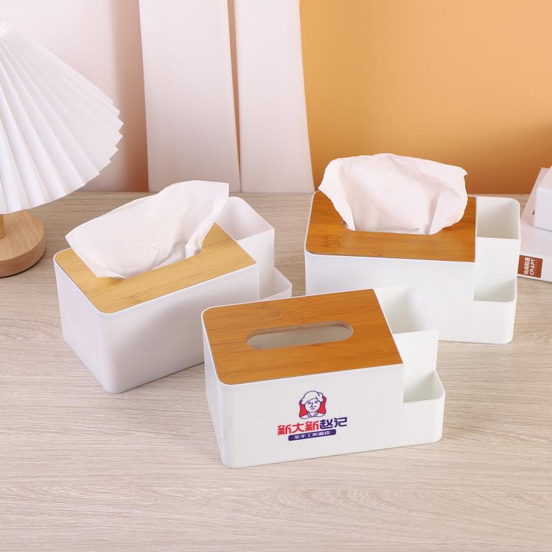 Caixa de lenços multifuncional com capa de madeira, caixa de plástico europeia para armazenamento de lenços, presente para casa, carro, logotipo publicitário, papel de seda