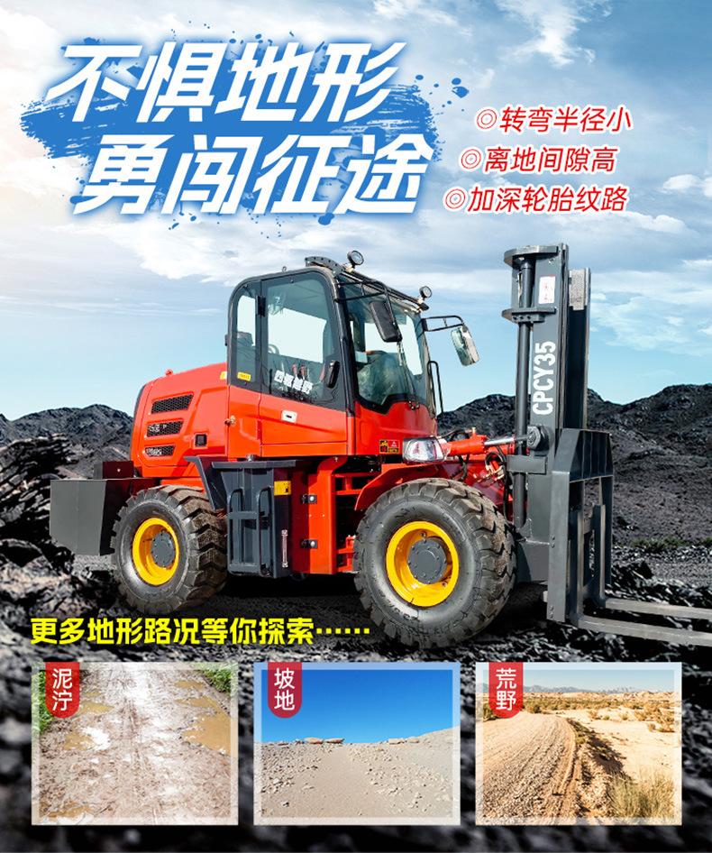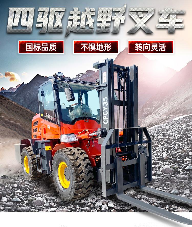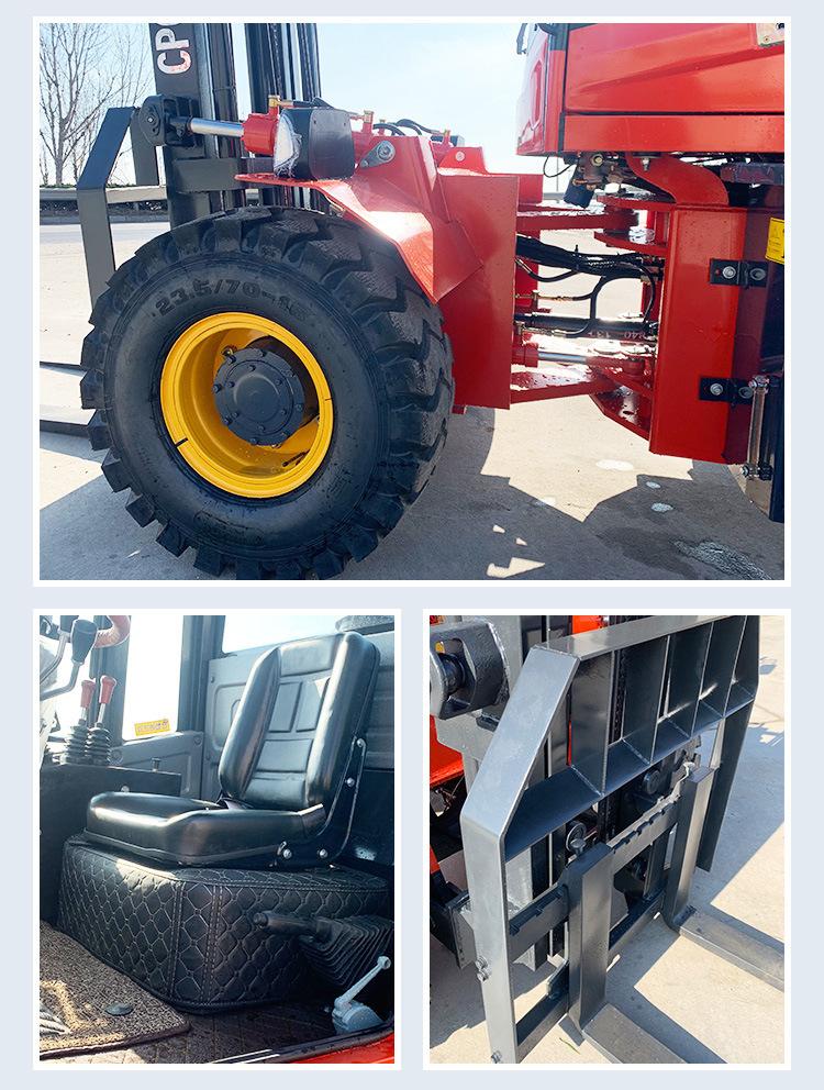 Empilhadeira off-road com tração nas quatro rodas a diesel da Strength Factory, 3 toneladas, 5 toneladas, guindaste de cauda modificado, caçamba, engenharia, escolha internacional