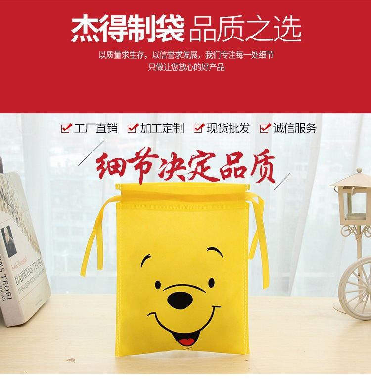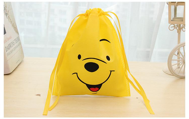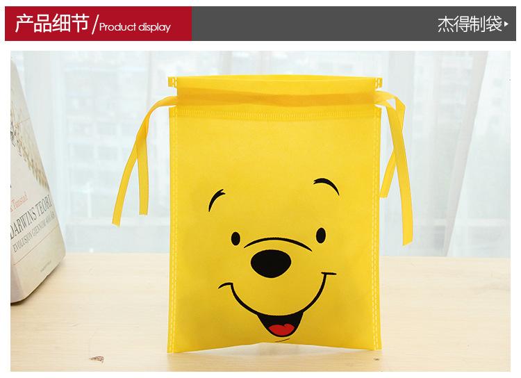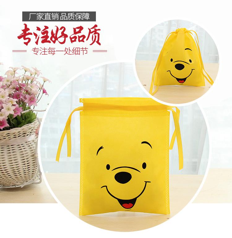 O saco de tecido não tecido pode ser impresso com logotipo personalizado para compras de desenhos animados saco de cordão acessórios de vestuário personalização de bolso