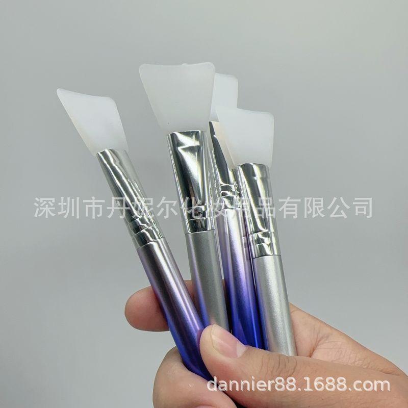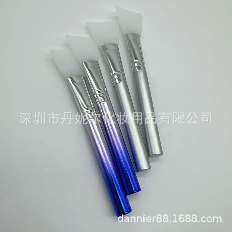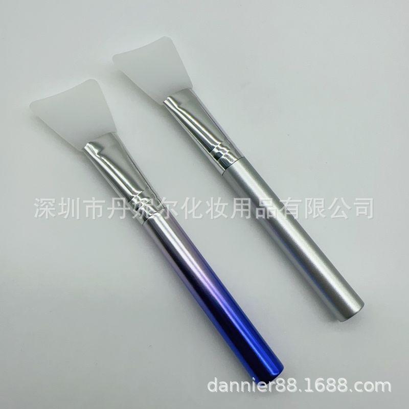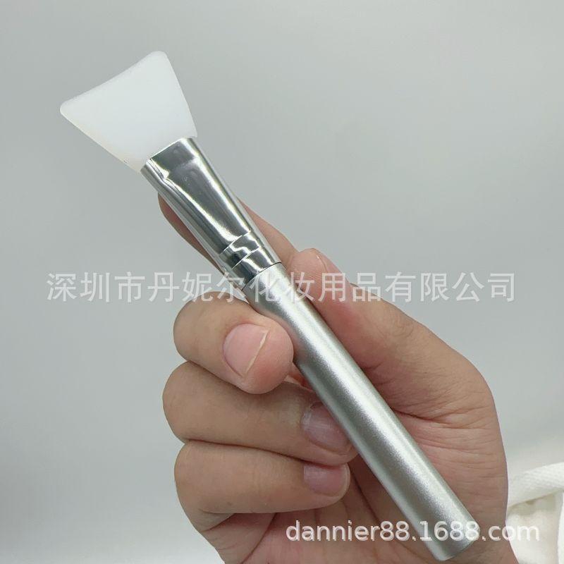 Acessórios de maquiagem profissional de fábrica pequeno pincel de maquiagem cabeça chata máscara de silicone escova fundação escova ferramenta alça de prata