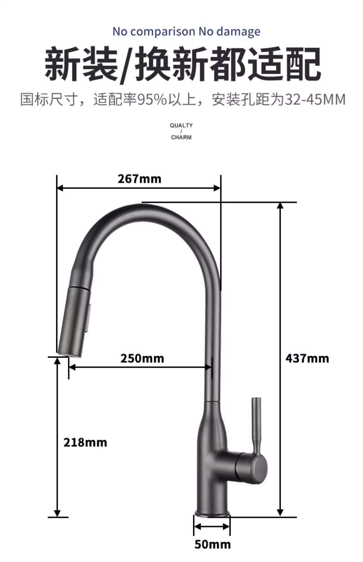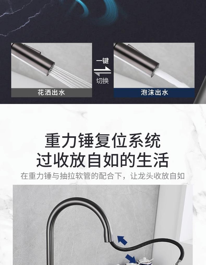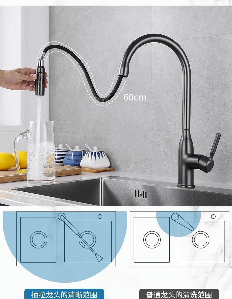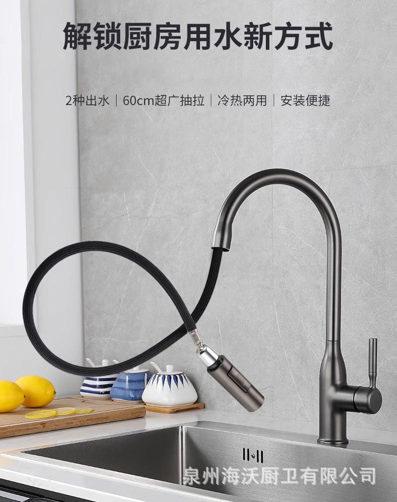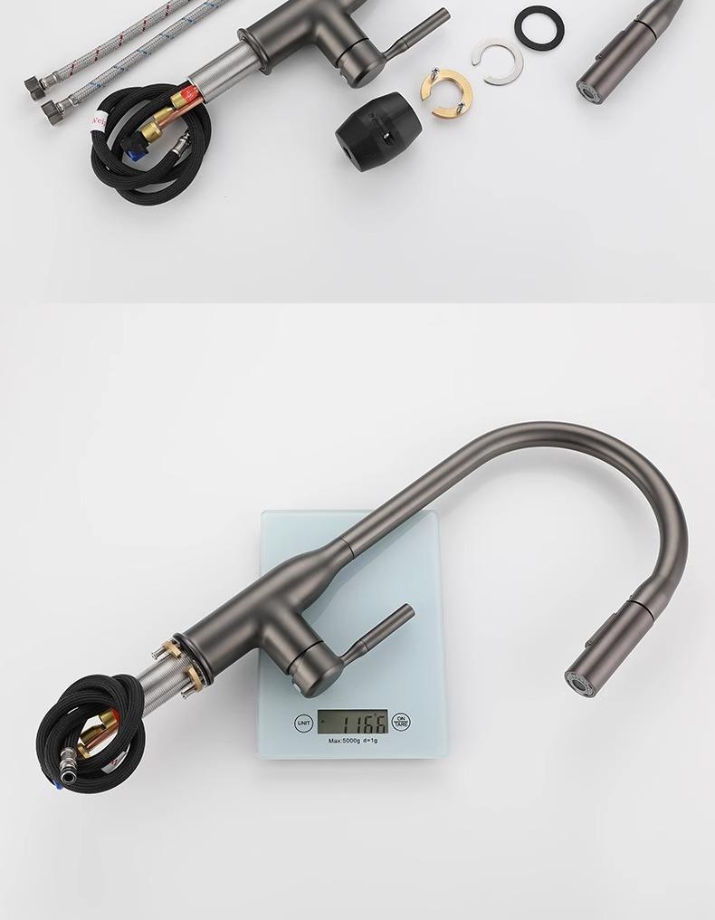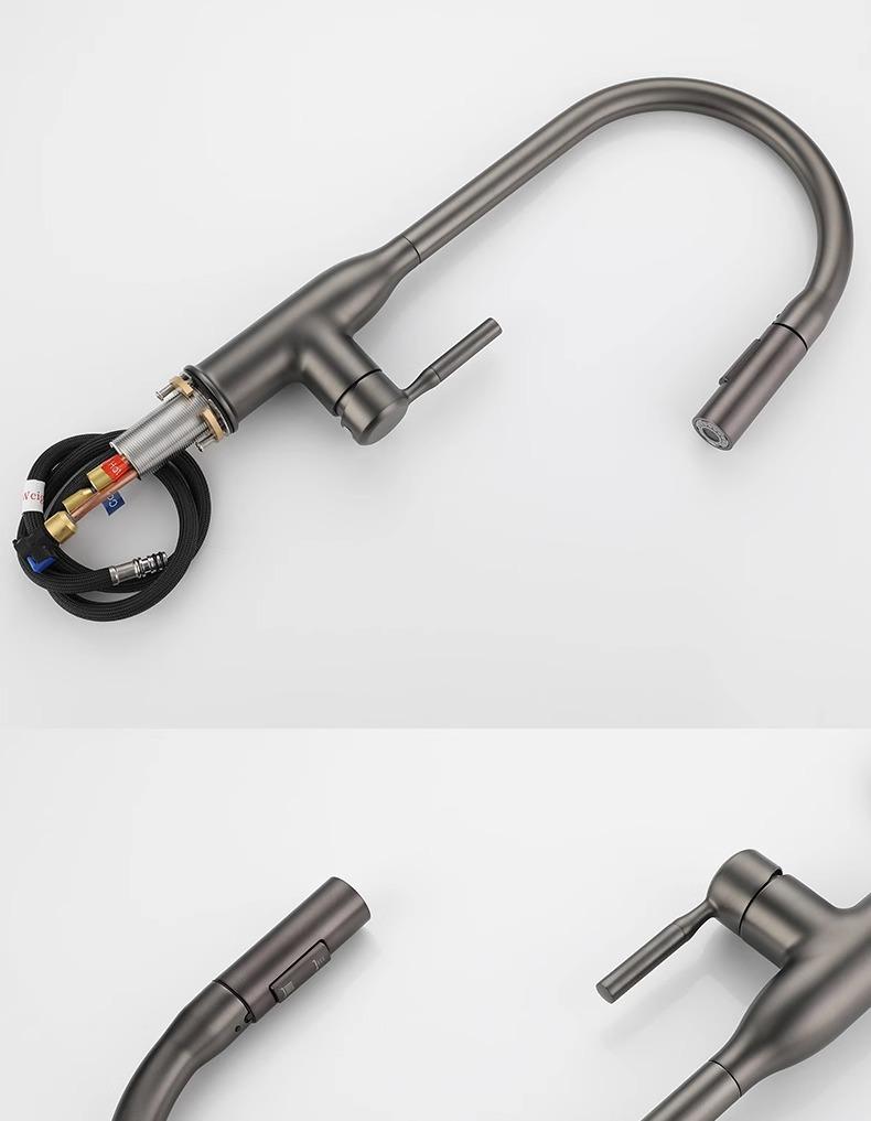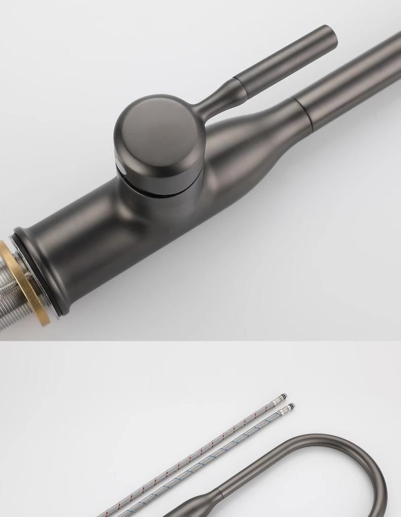 Gun gray copper pull vegetable basin faucet, Elegant white copper pull-out basin faucet, Elegant black copper ...