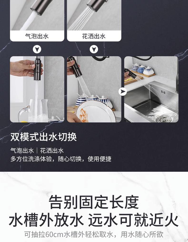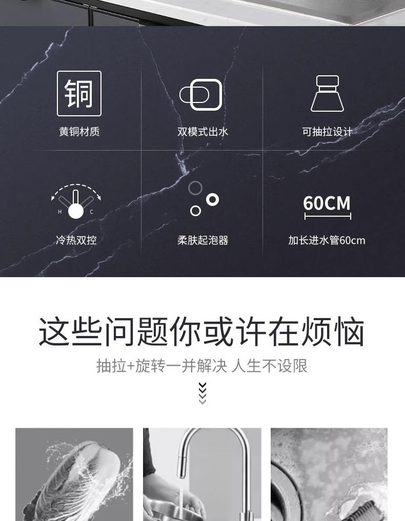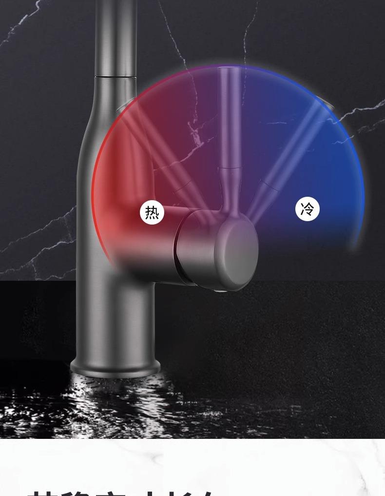 Torneira de tração de cobre de duas marchas refrigerada a água pia de controle duplo quente lavatório de vegetais universal retrátil torneira de cozinha doméstica