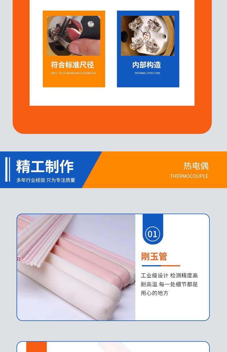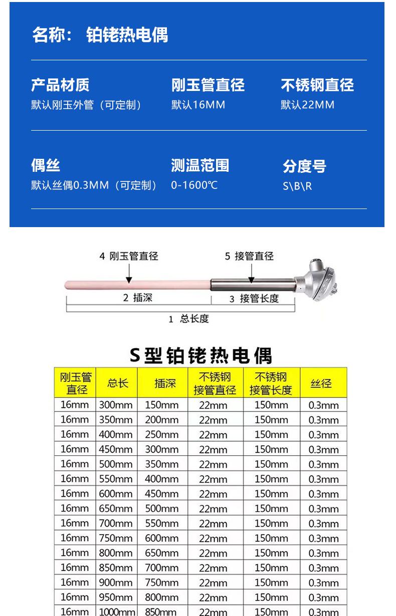 Sensor de alta temperatura industrial 0-1800C tipo B/R/S, com termopar de tubo de cerâmica/coríndon tipo S