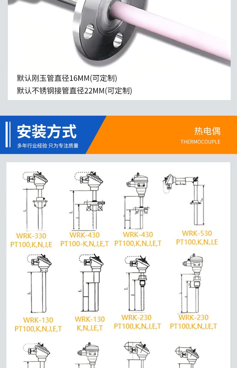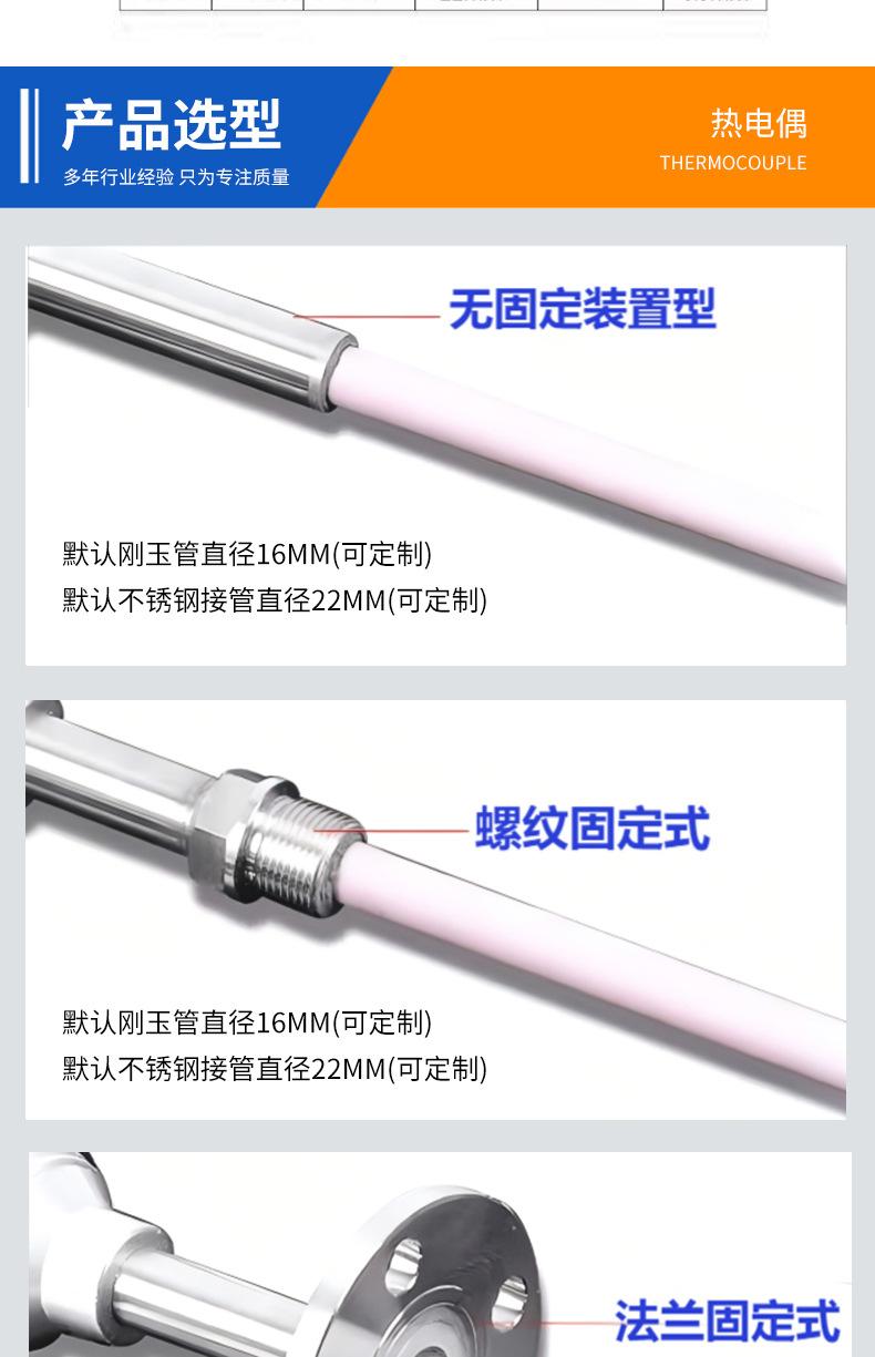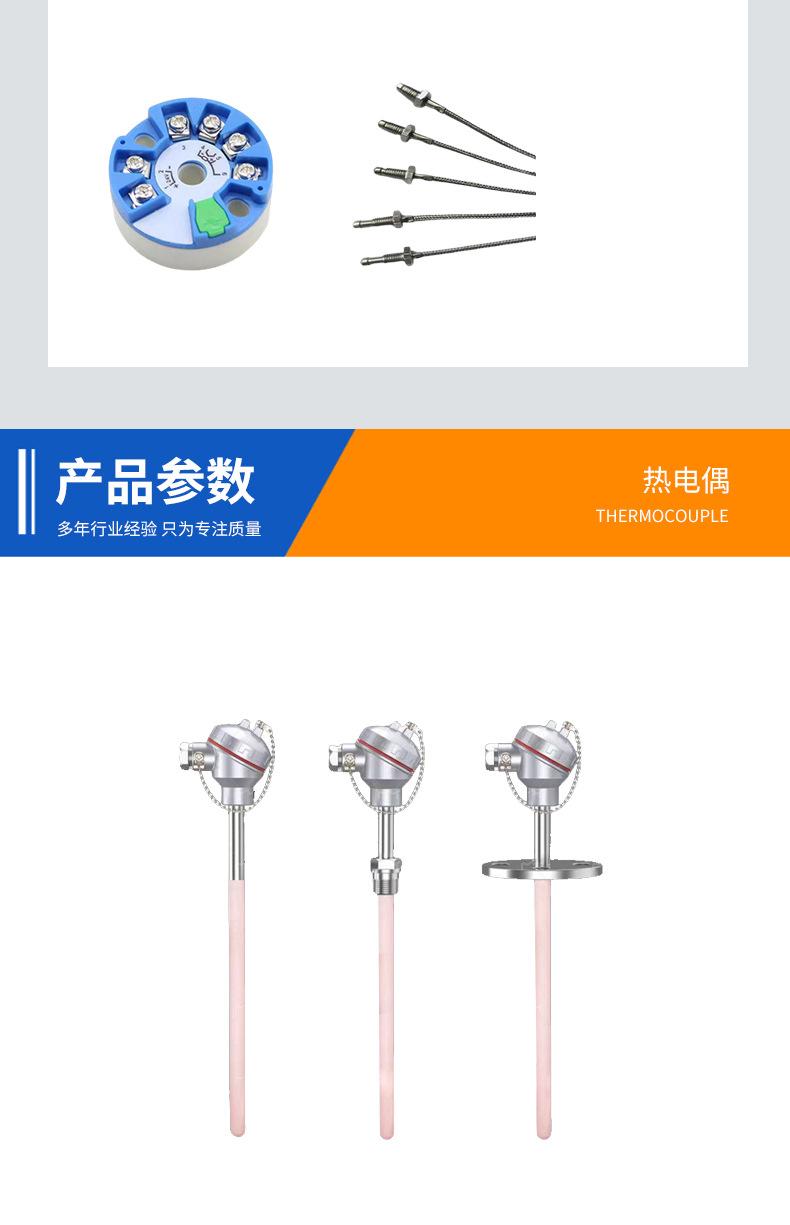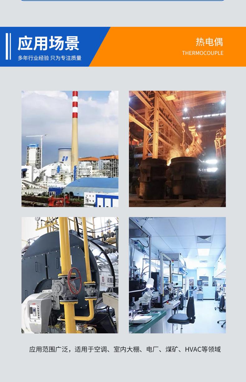 Termopares montados de platina-ródio são amplamente usados em locais de produção de alta temperatura. Eles são usados principalmente para medição de temperatura nas indústrias de vidro e cerâmica e fornos de salga industrial.