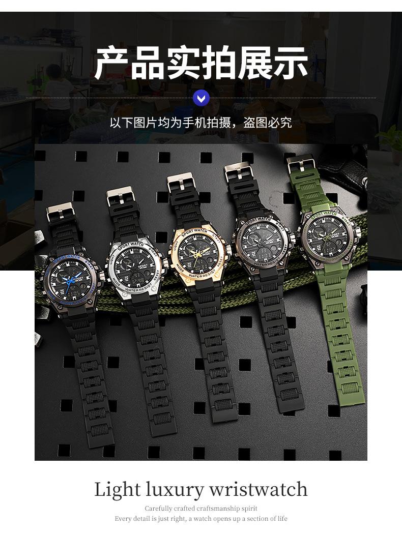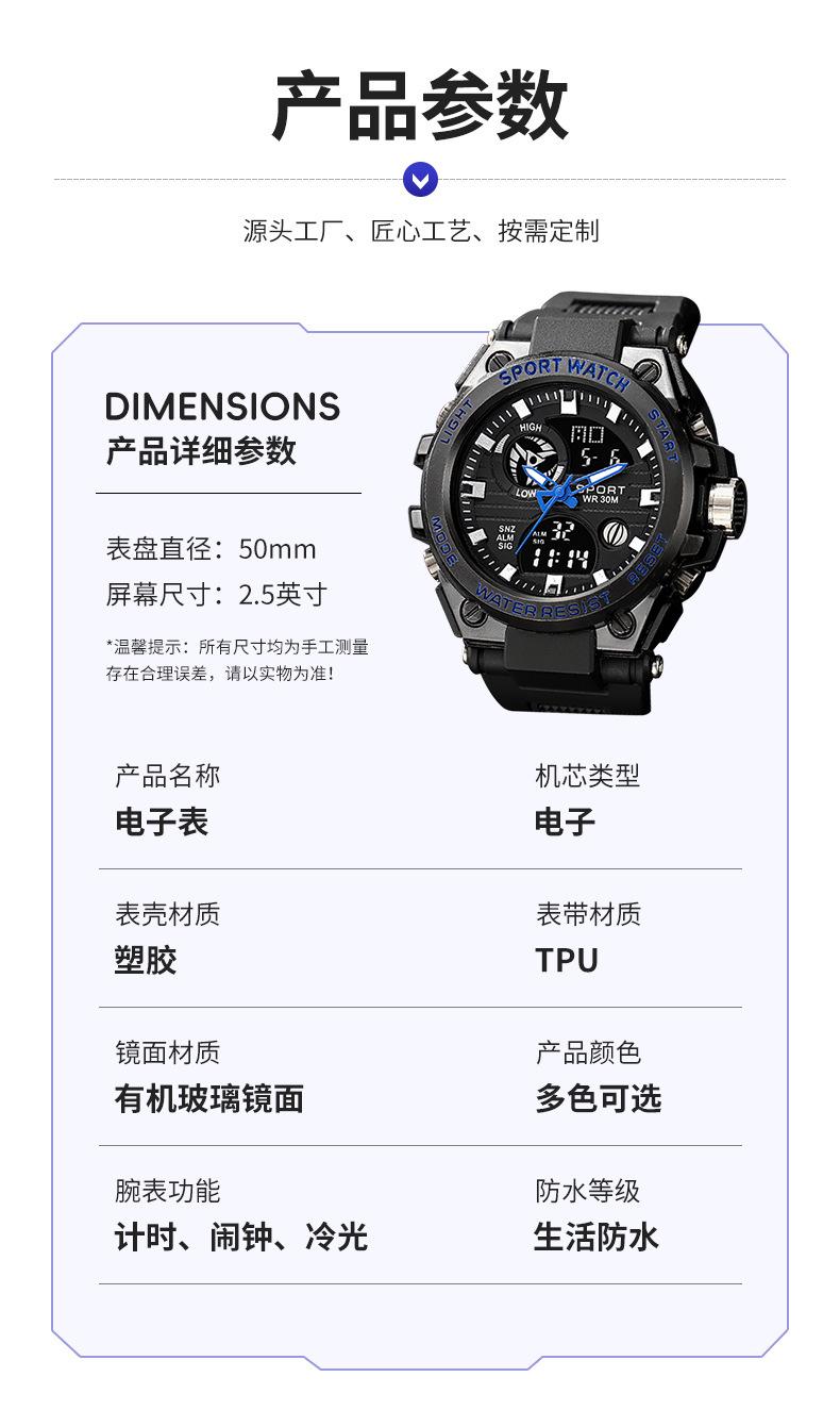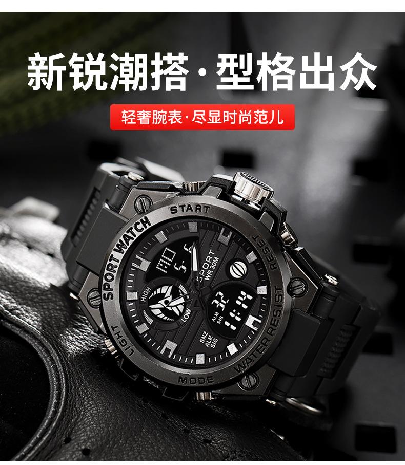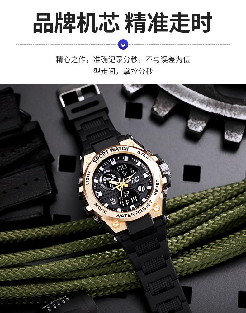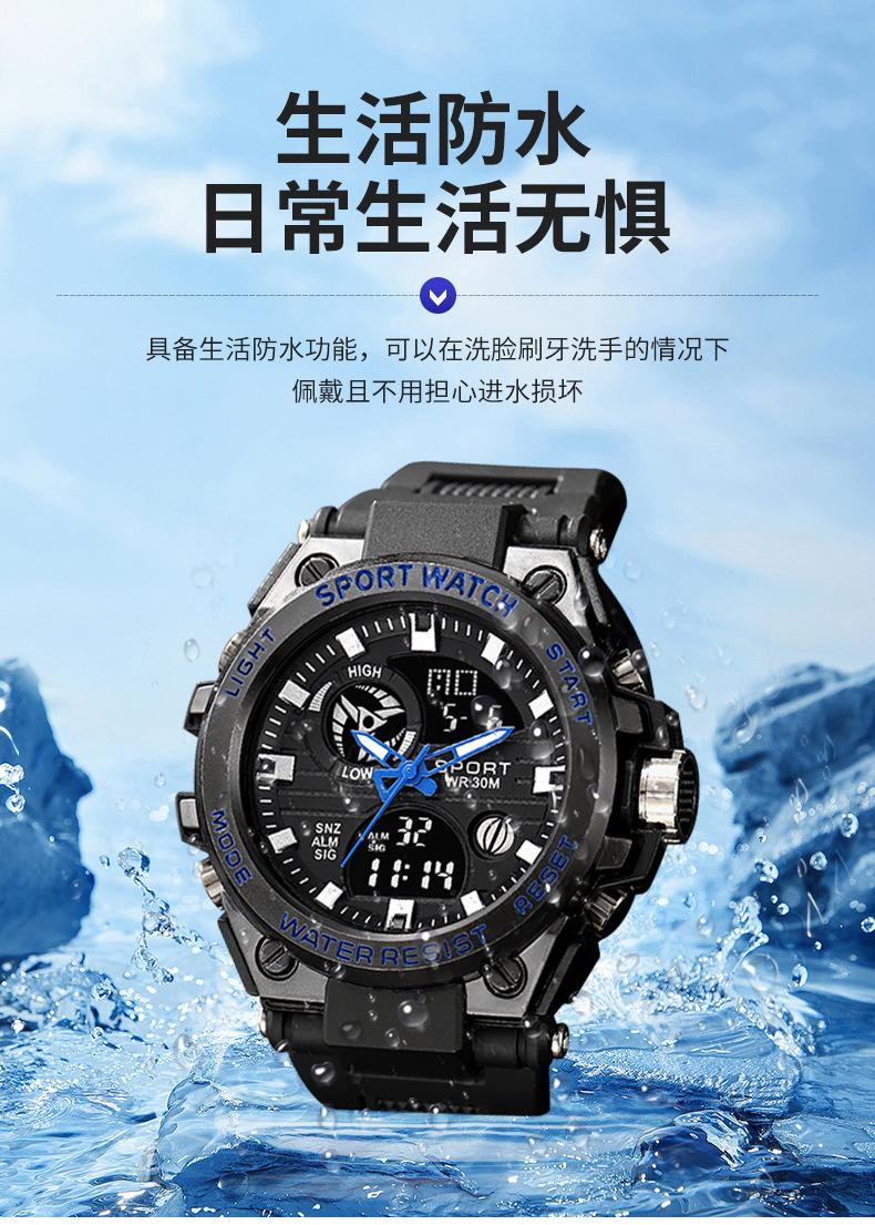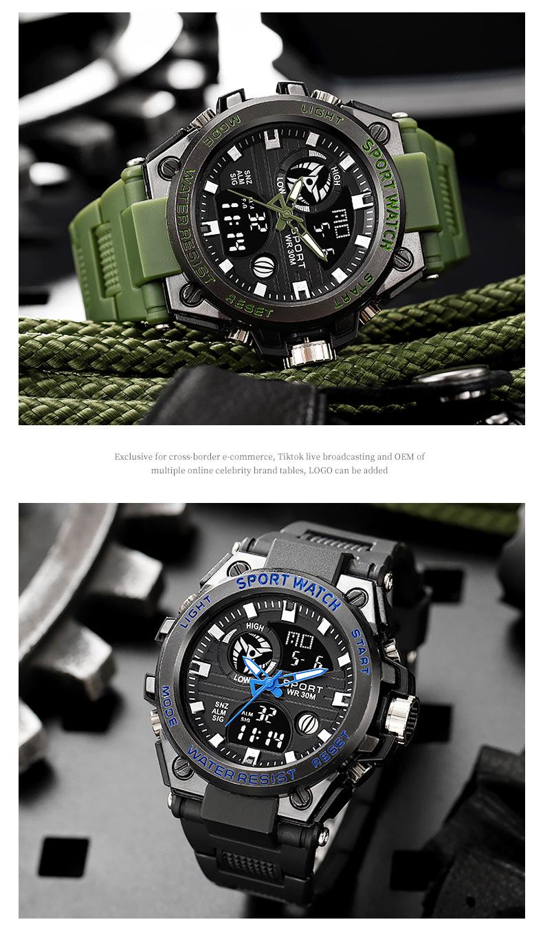Relógio eletrônico masculino multifuncional à prova d'água com visor duplo transfronteiriço Relógio esportivo luminoso resistente a quedas para jovens