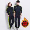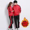 Novo terno esportivo casual de outono e inverno com forro de lã, estilo coreano, moda para casal, gola alta, terno masculino e feminino, duas peças