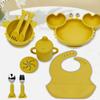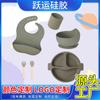 Conjunto de Talheres de Silicone para Bebês e Crianças, Conjunto de 6 Peças Incluindo Tigelas, Babadores, Copos, Pratos, Colheres e Garfos, Atacado, Resistente ao Calor