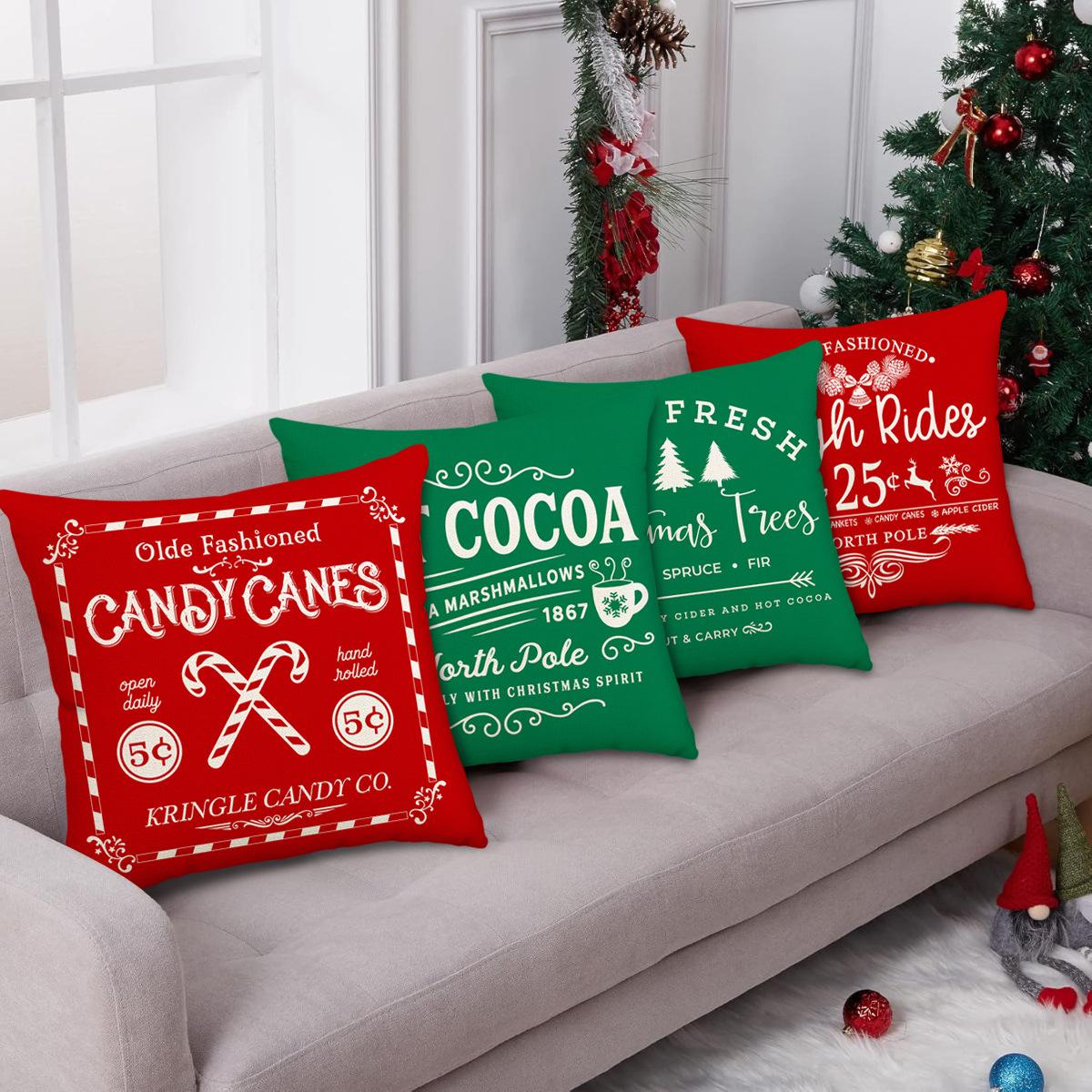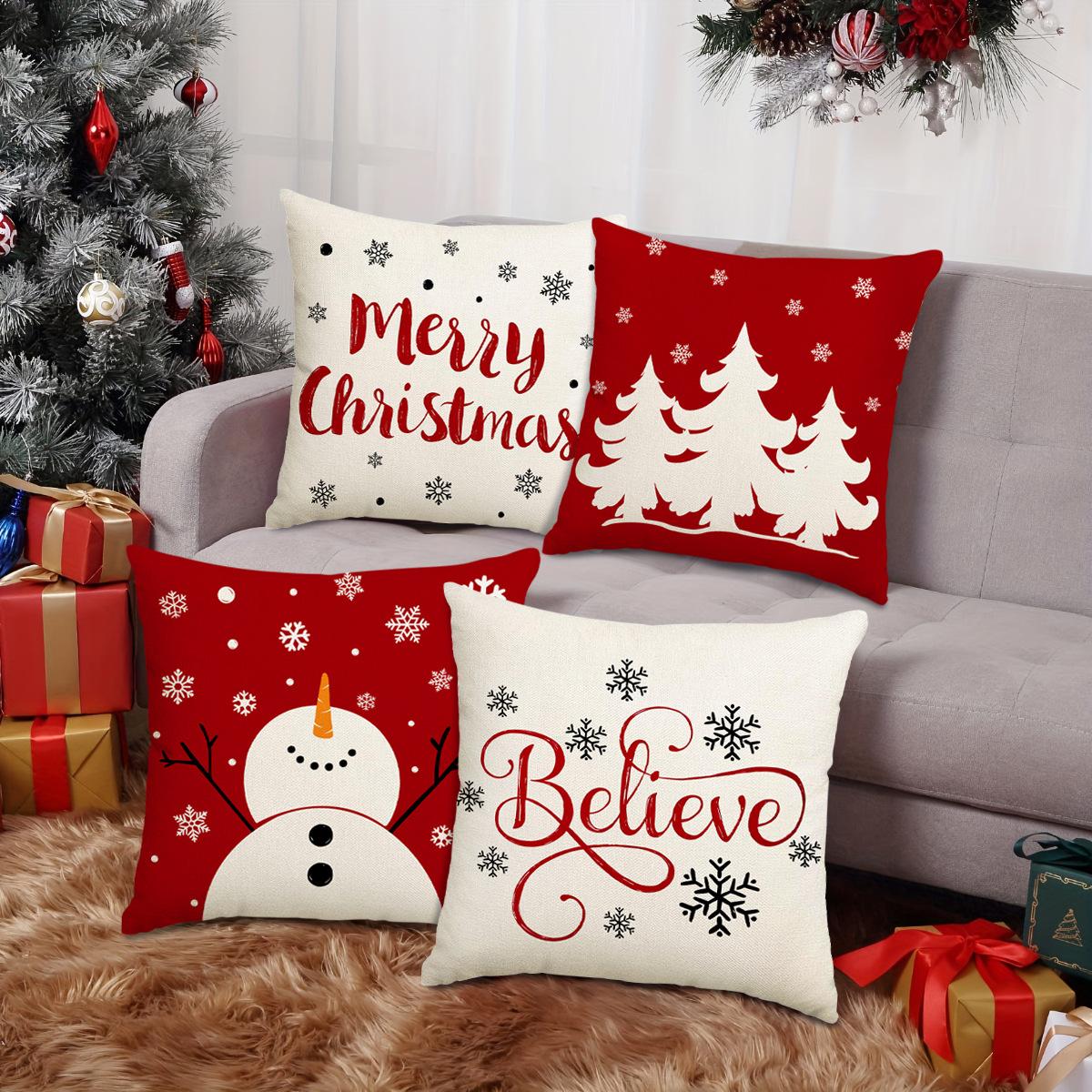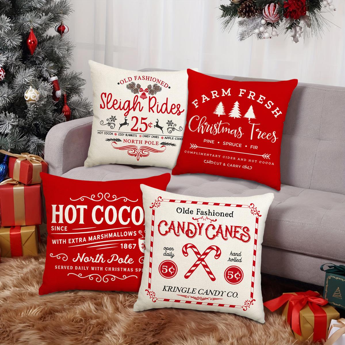 Temu Amazon cross-border capa de almofada de Natal capa de almofada de letras de linho de imitação de Natal capa de almofada decorativa para sofá