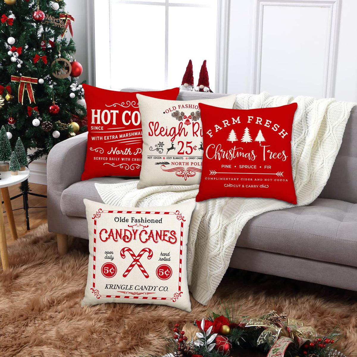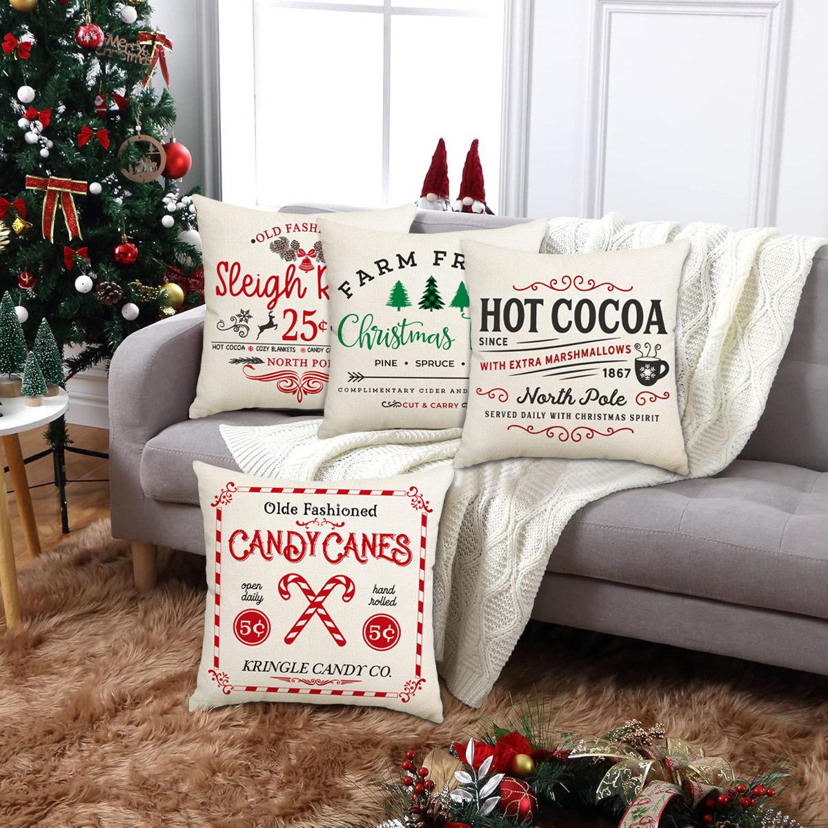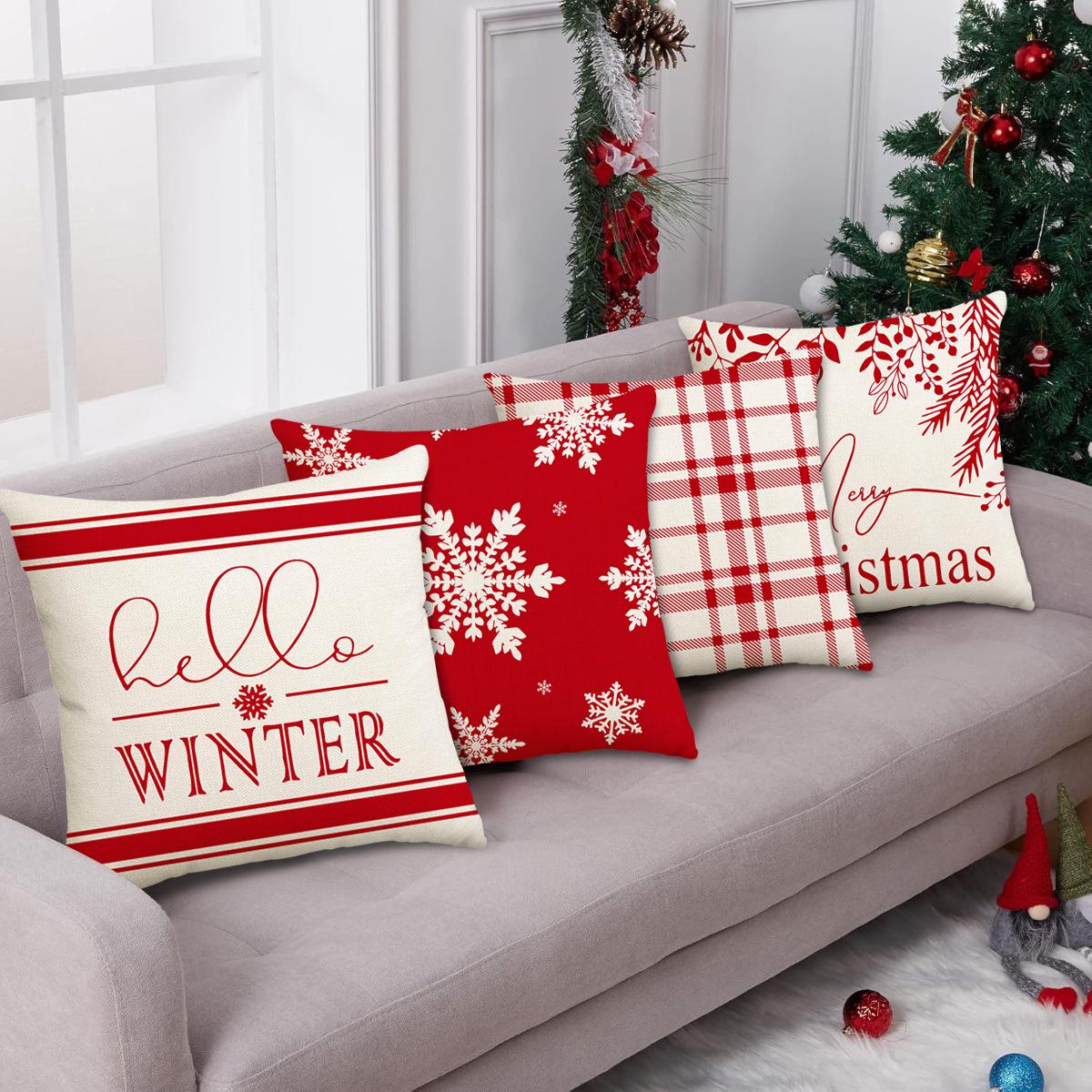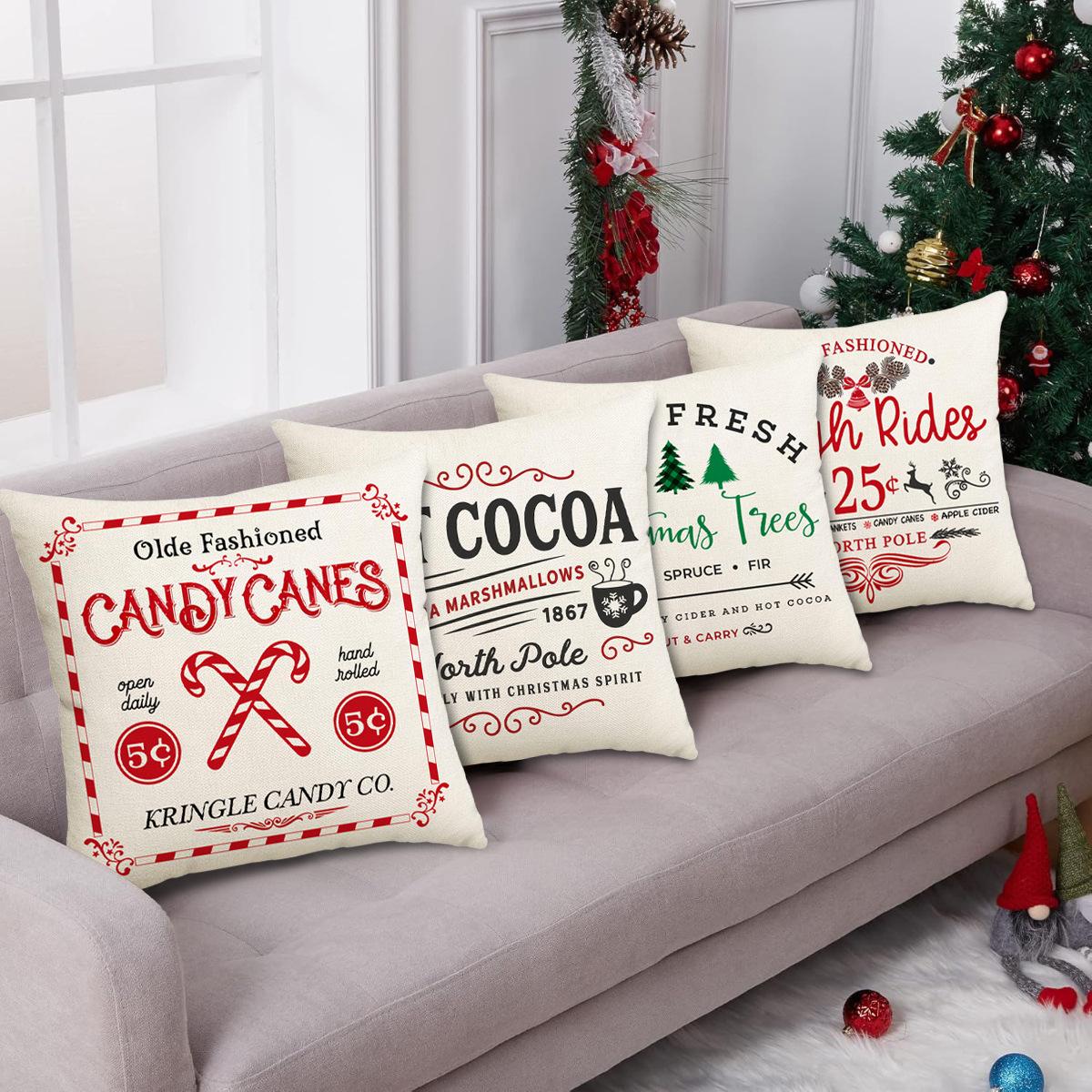 Temu Amazon cross-border capa de almofada de Natal capa de almofada de letras de linho de imitação de Natal capa de almofada decorativa para sofá