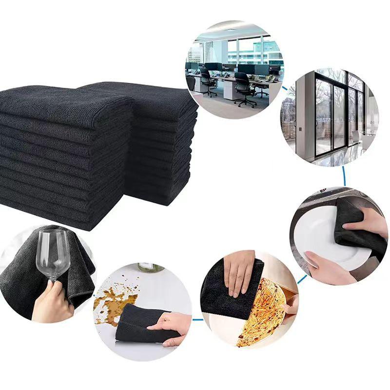 Toalha preta de urdidura de microfibra 40 * 40 Toalha de carro Toalha de limpeza de cozinha doméstica Salão de beleza Toalha de mão de cabelo seco