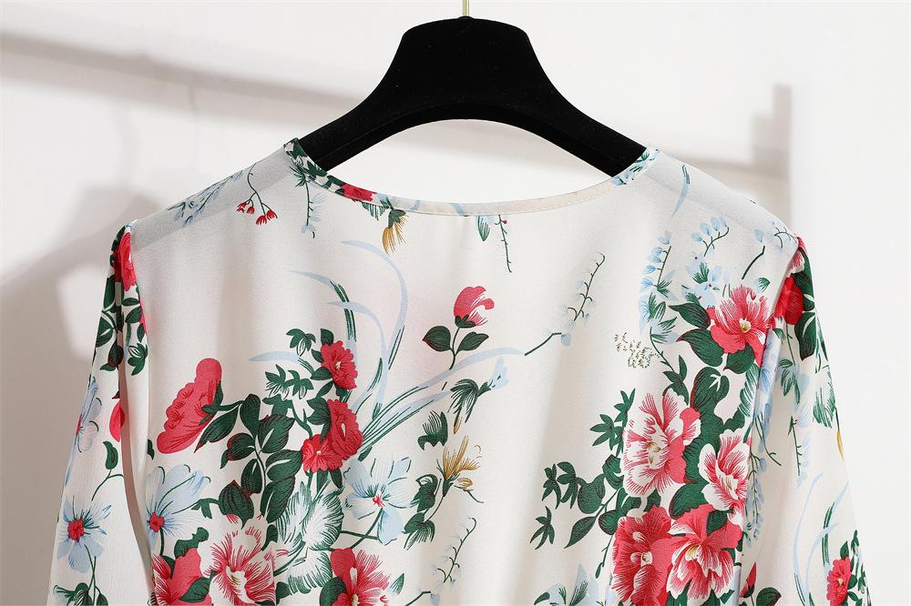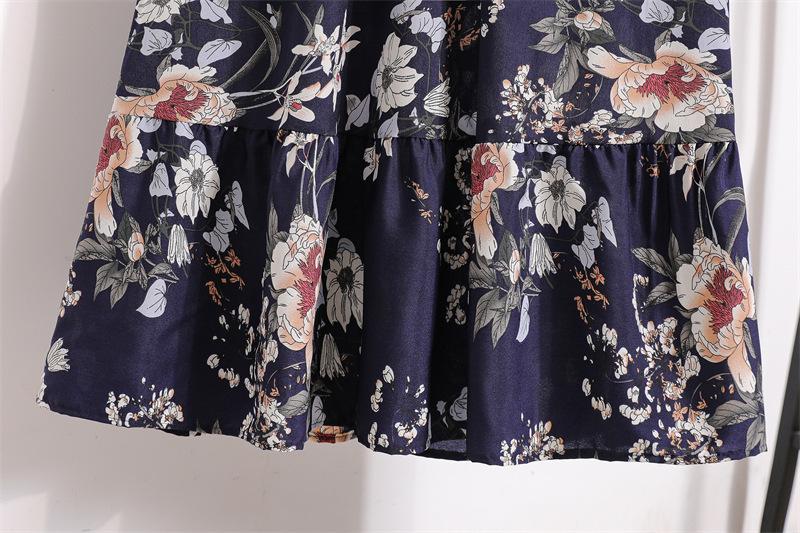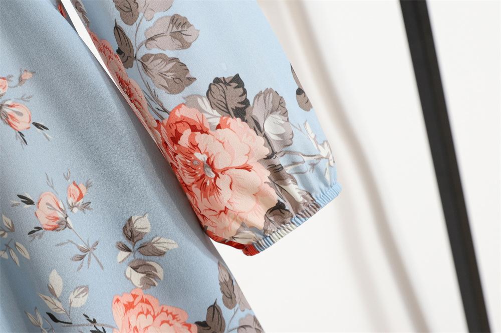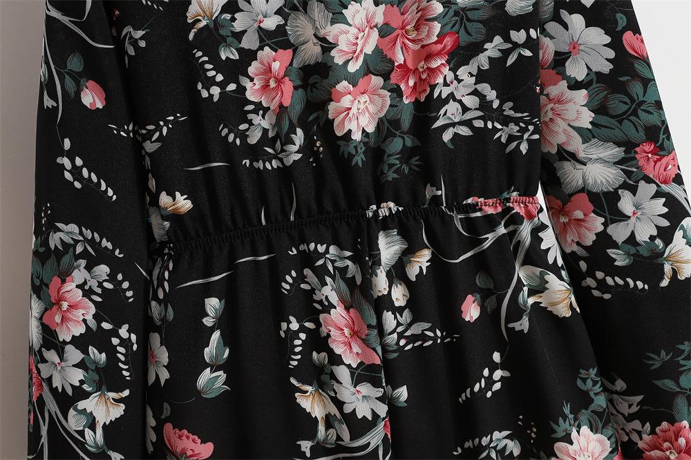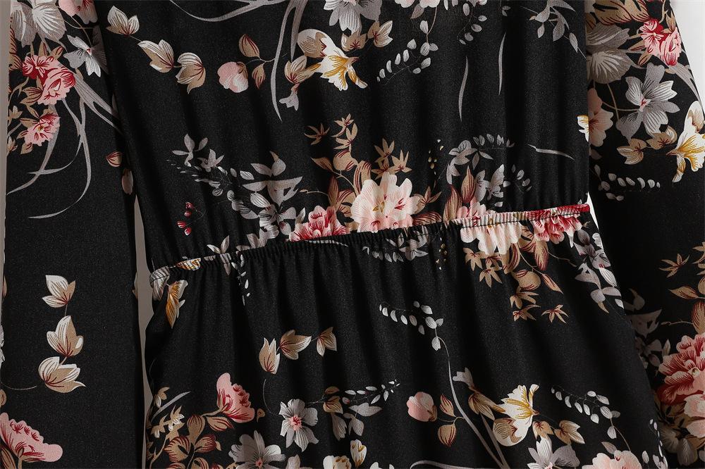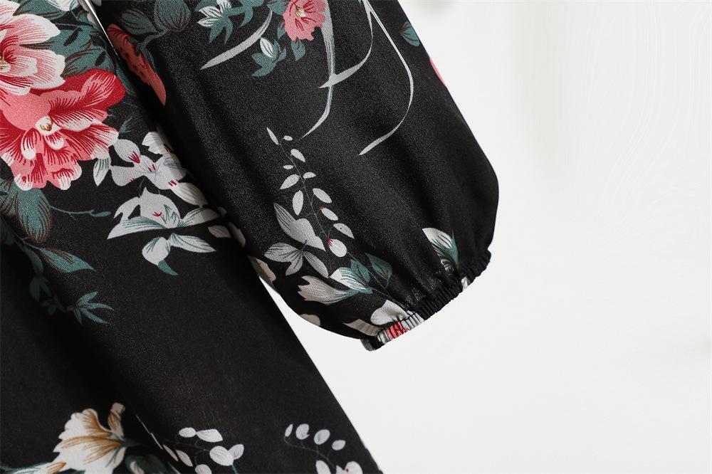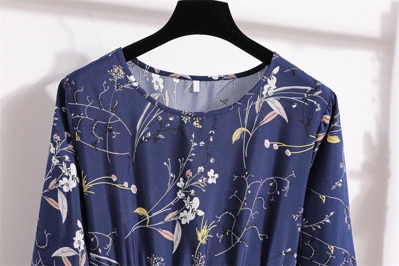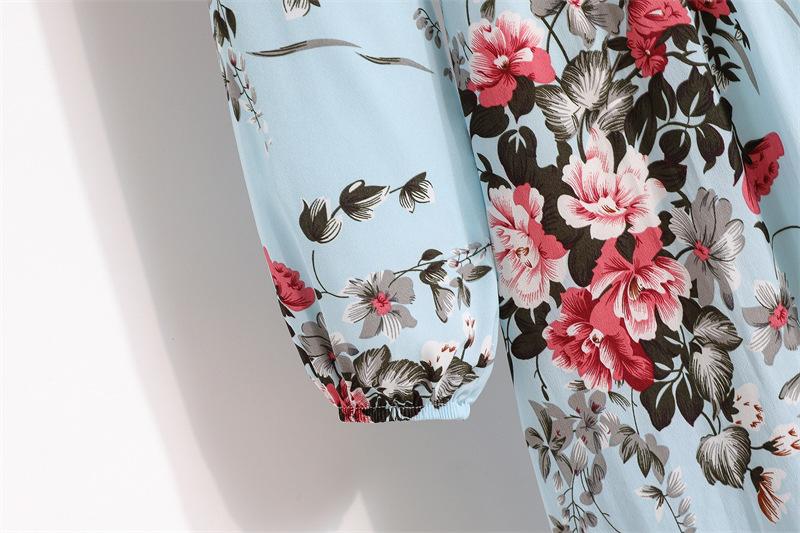 Comércio exterior vestido floral europeu e americano gola redonda manga comprida YY0008