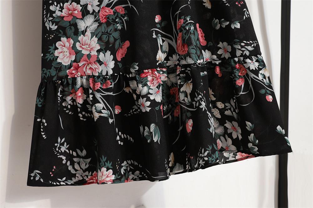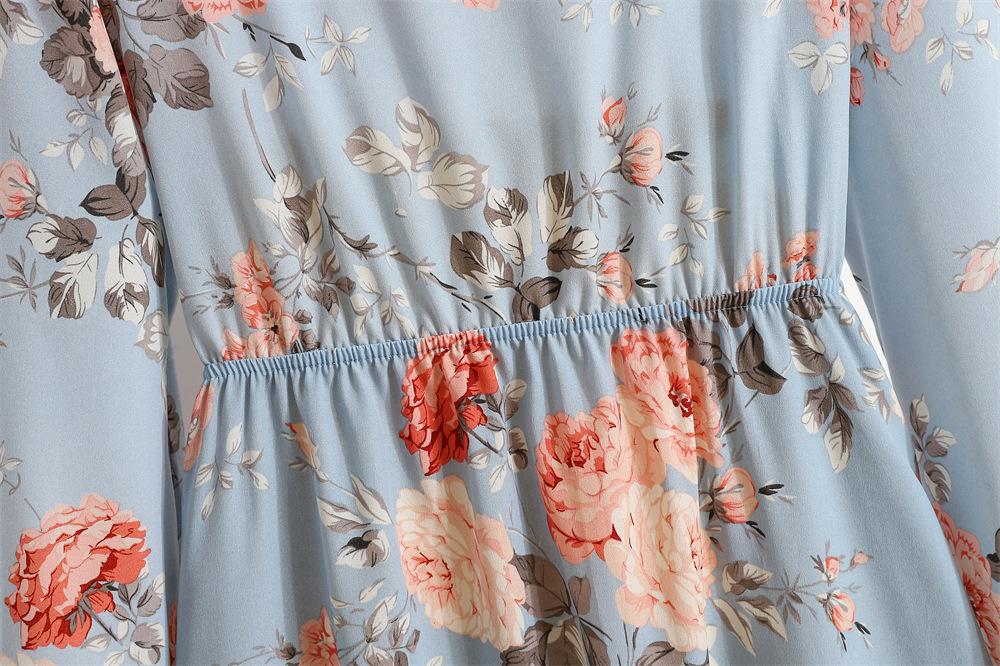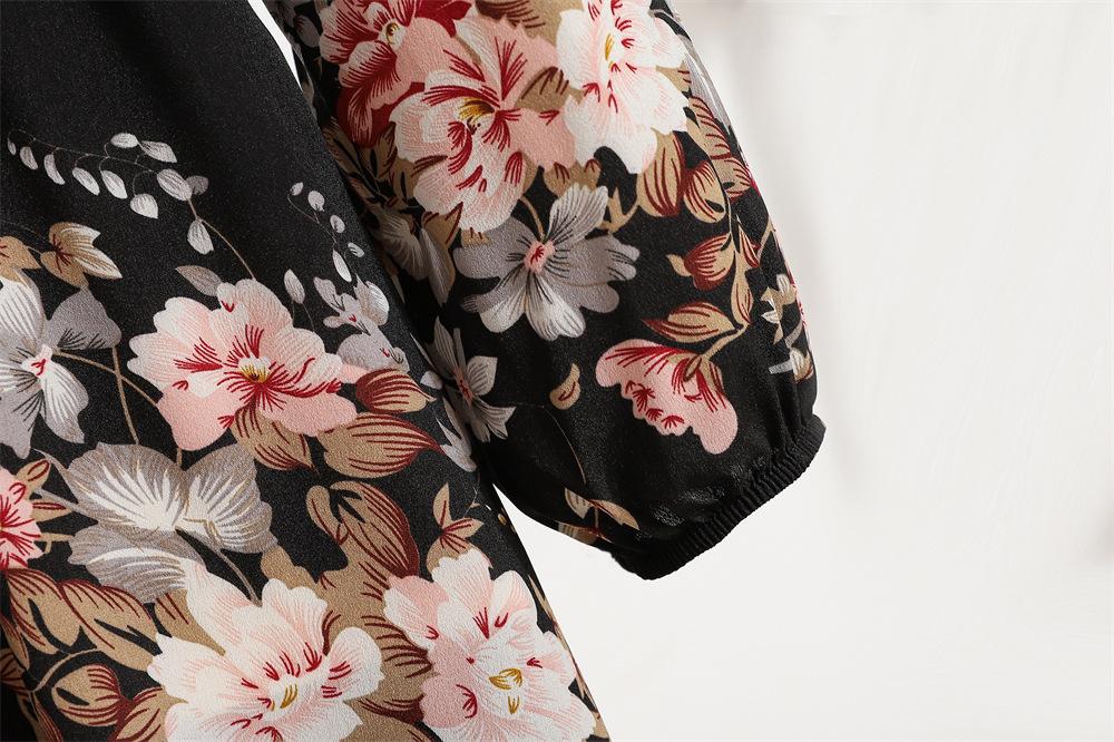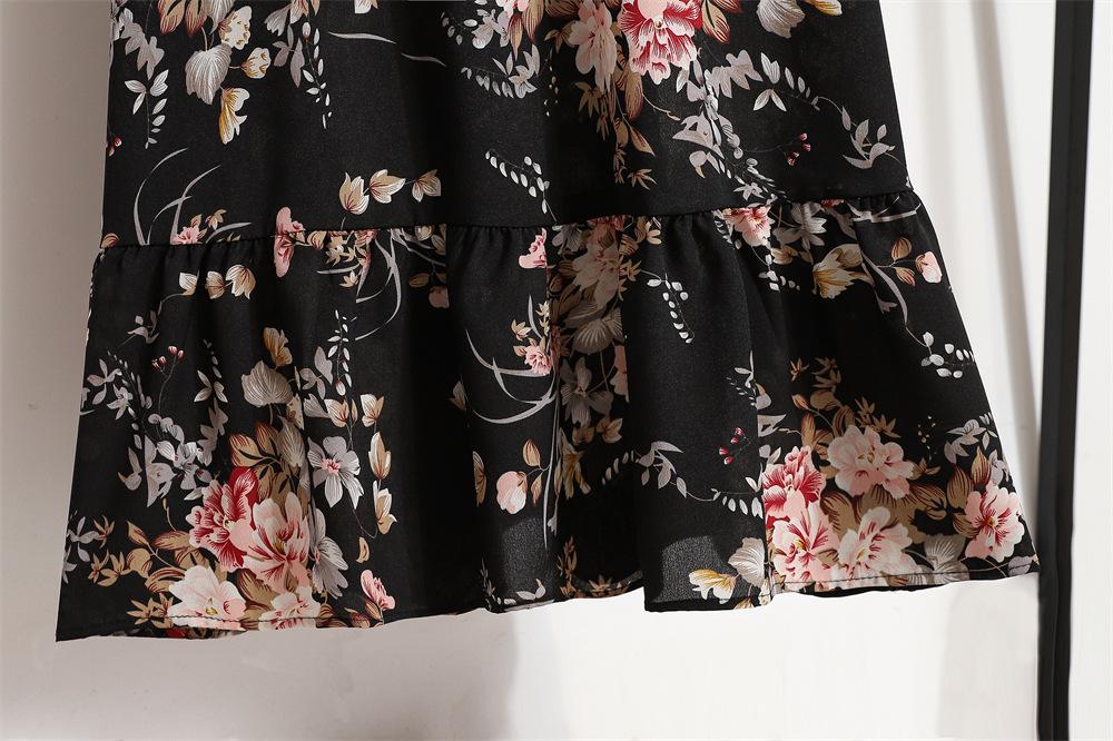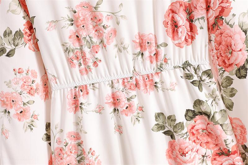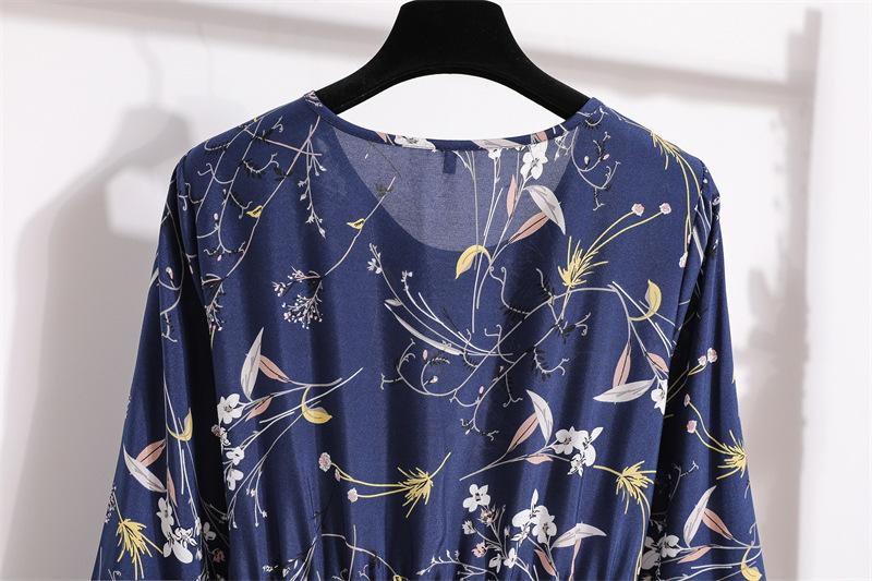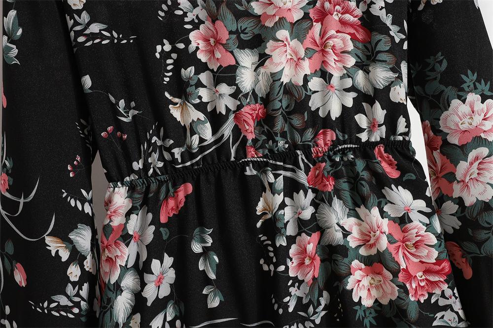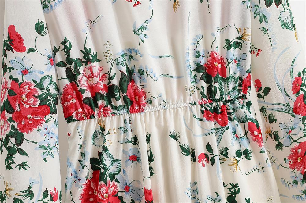Comércio exterior vestido floral europeu e americano gola redonda manga comprida YY0008