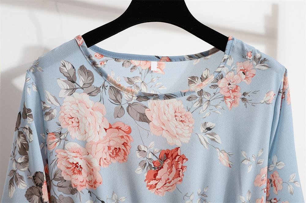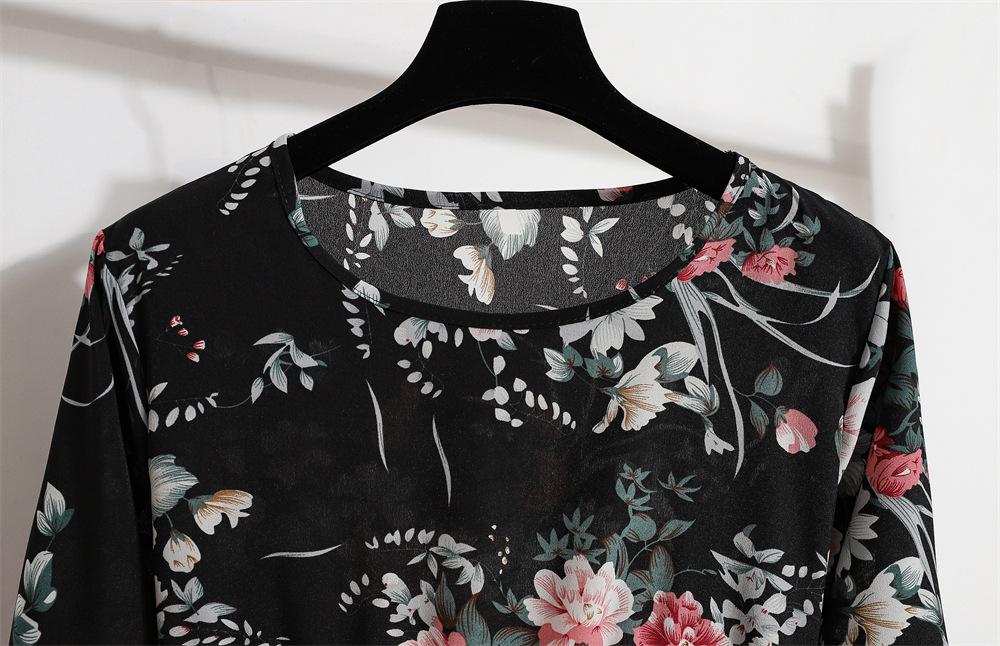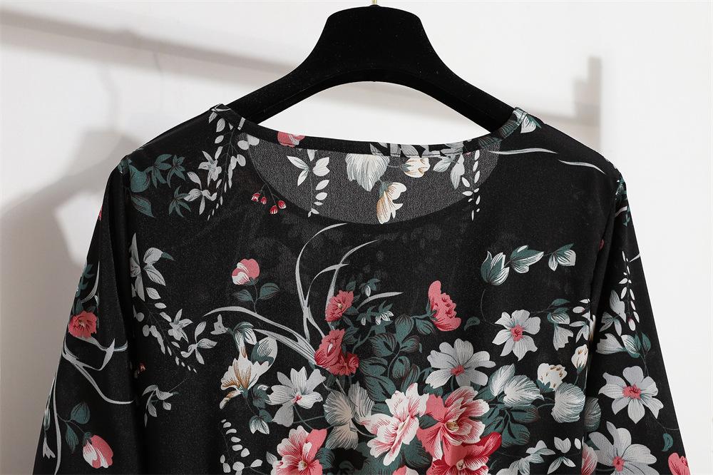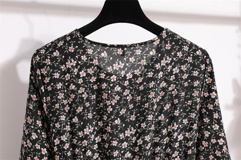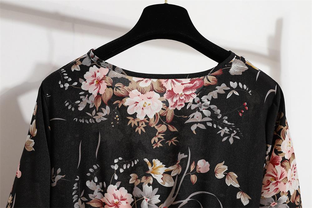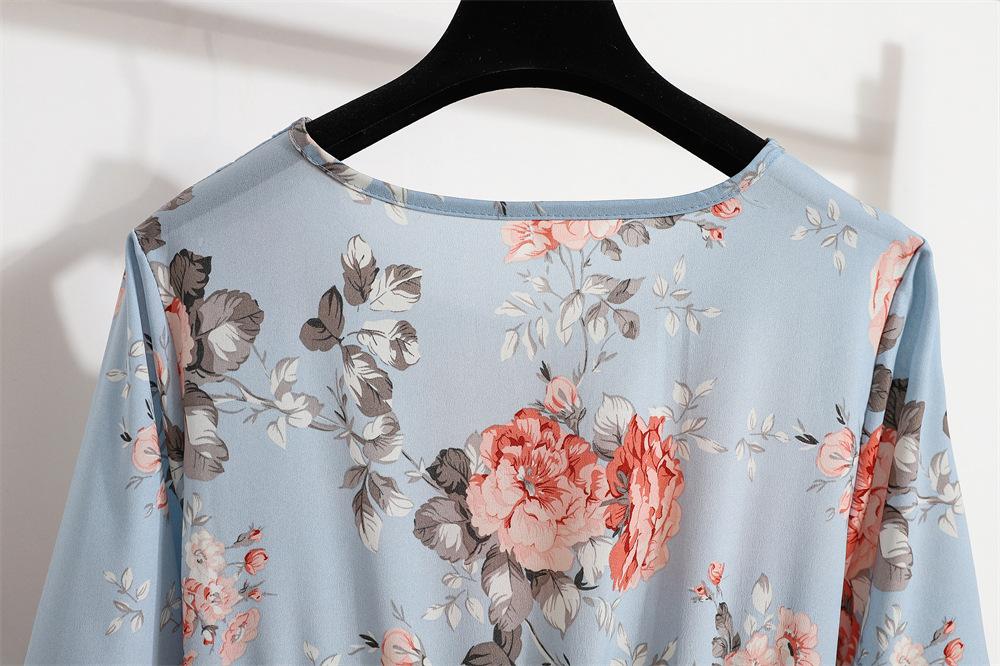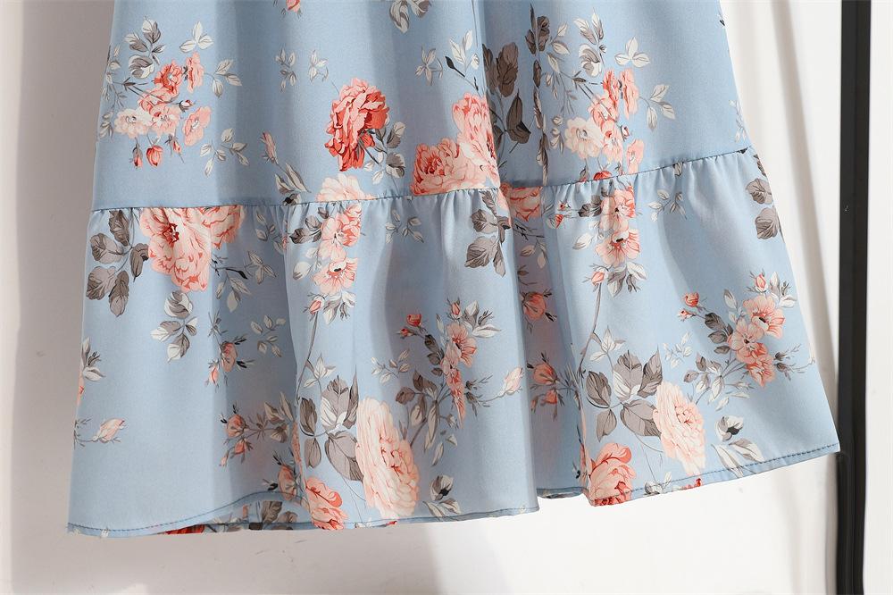 Comércio exterior vestido floral europeu e americano gola redonda manga comprida YY0008