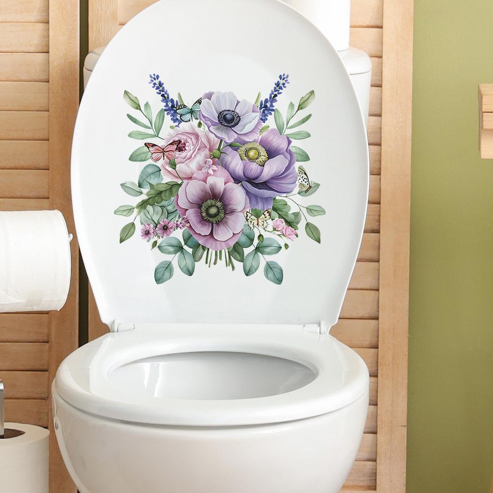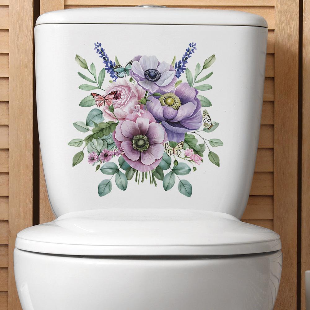 Comércio exterior fresco simples flor toilet adesivos banheiro banheiro decoração de casa adesivos de parede atacado cross-border
