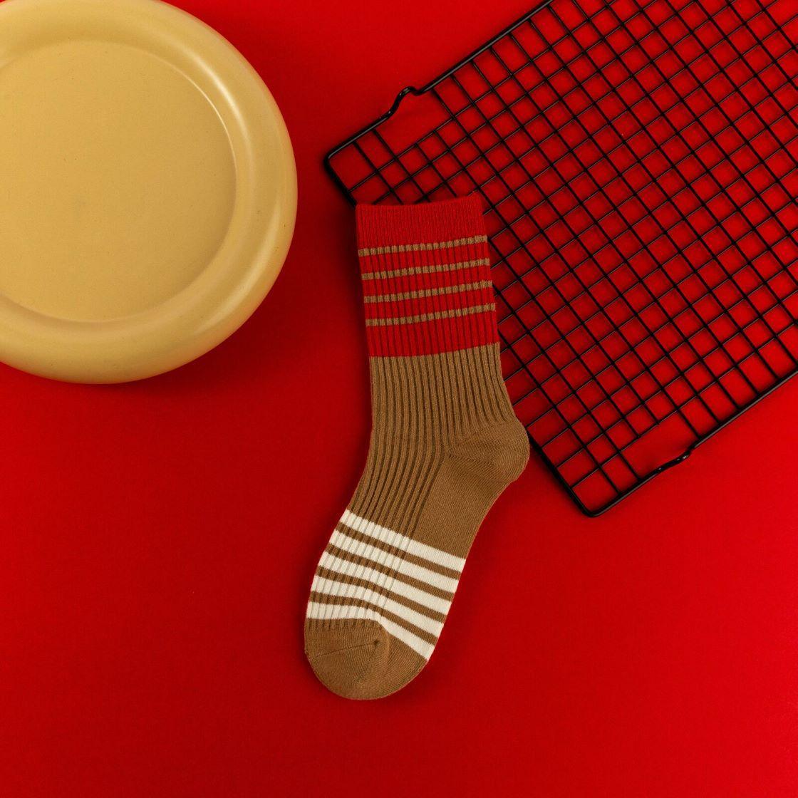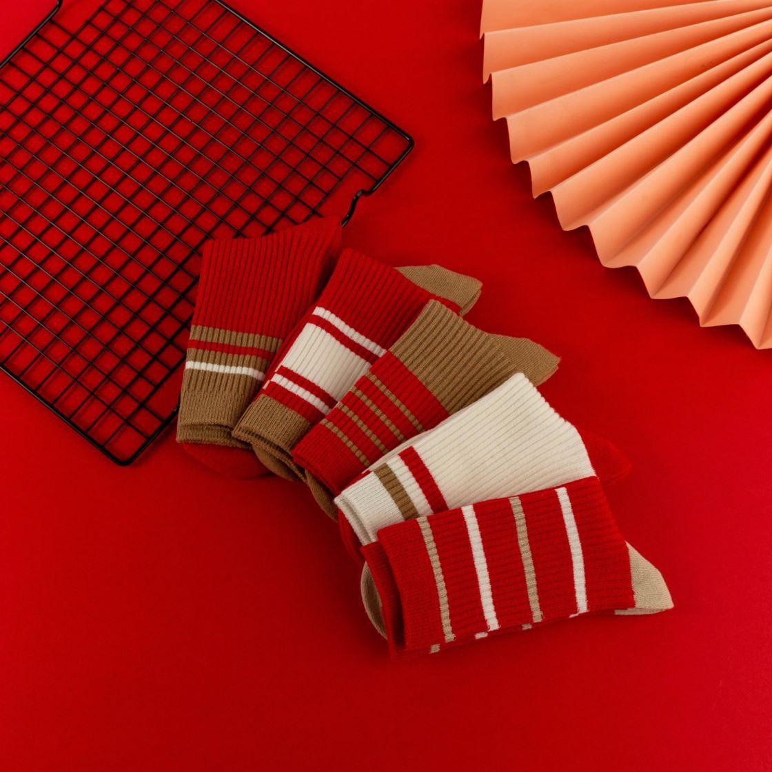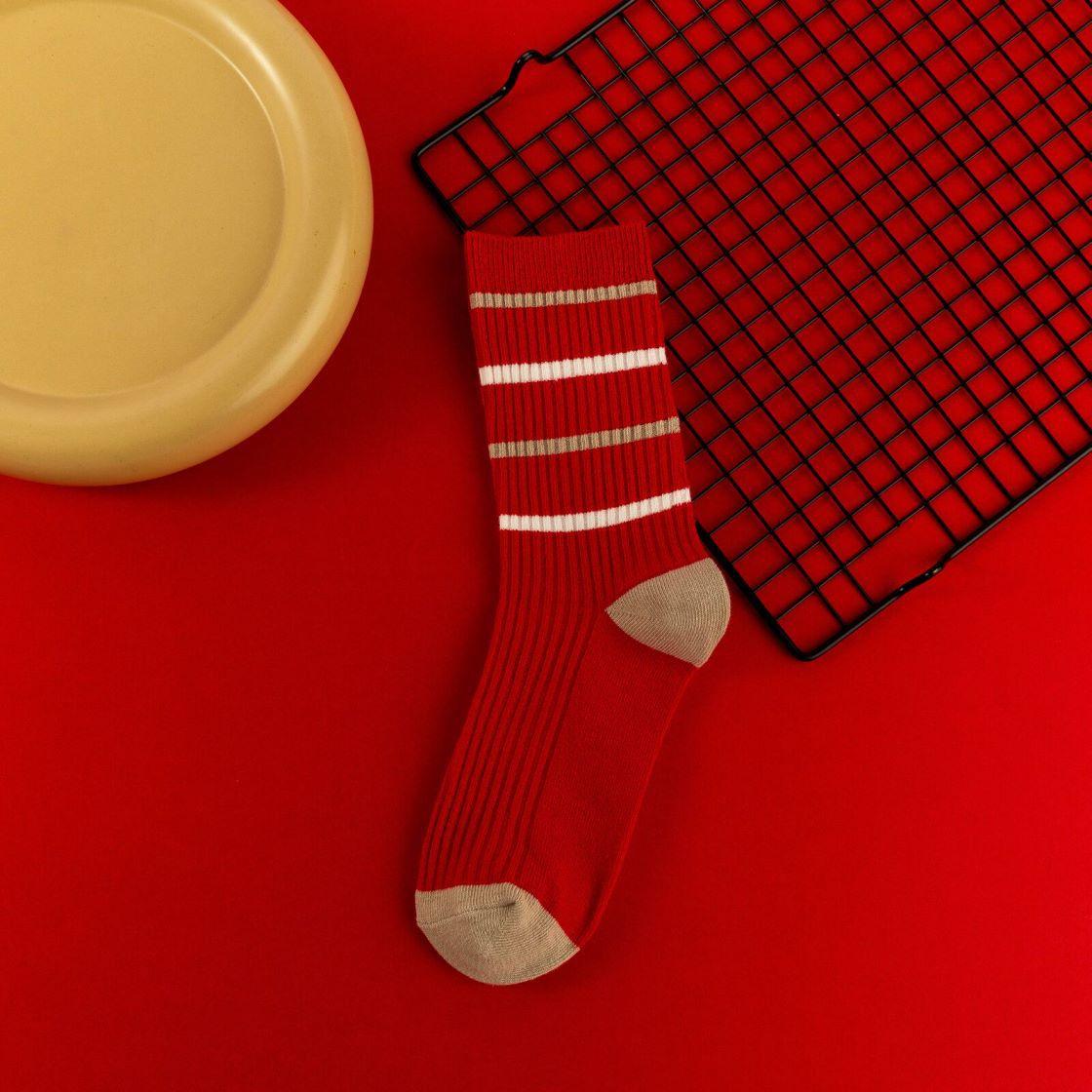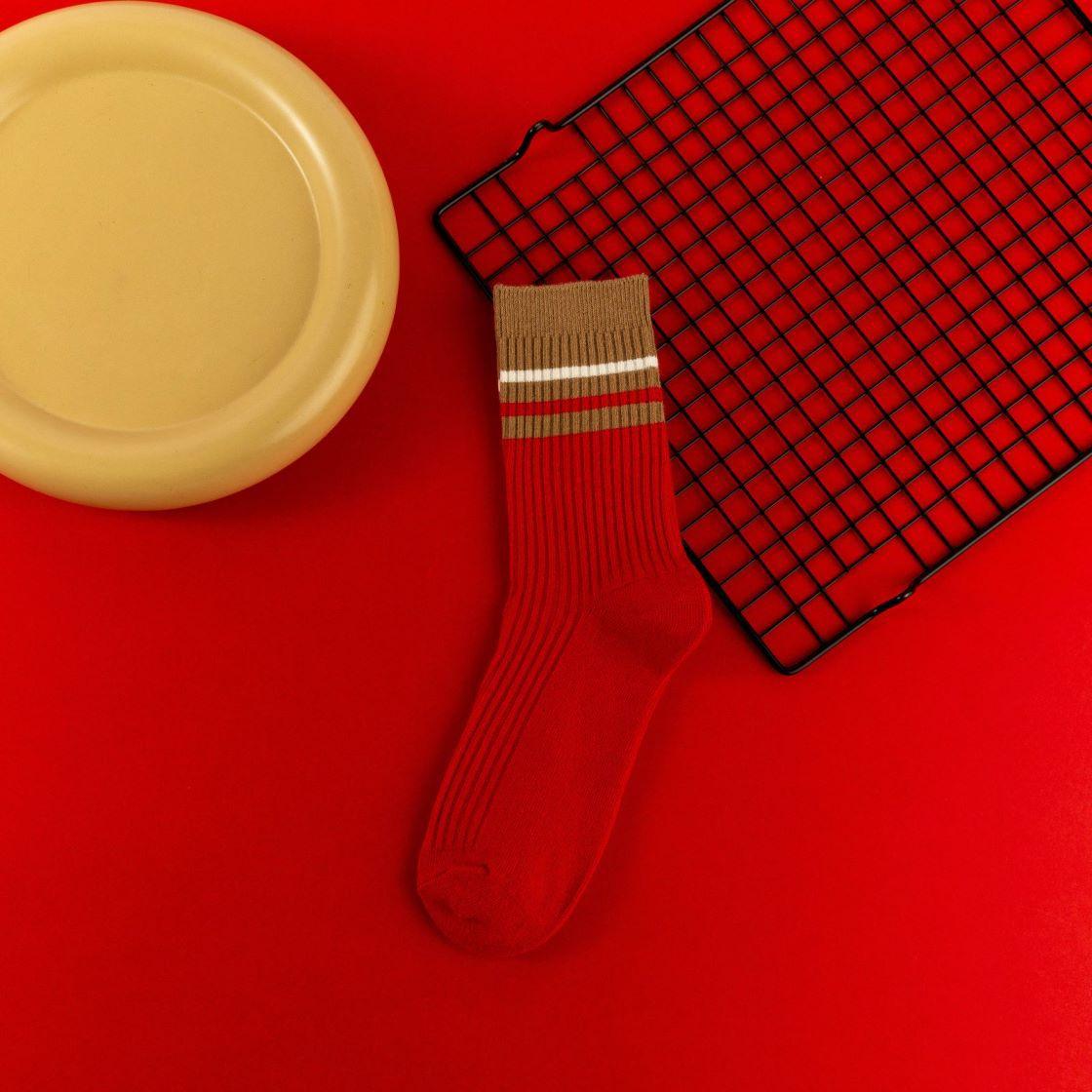 Nova chegada Ano Novo Vermelho Festivo Cano Alto Ano Novo Meias de Tamanho Médio Meias de Algodão Confortáveis Respiráveis Casamento Listrado All-match Feminino