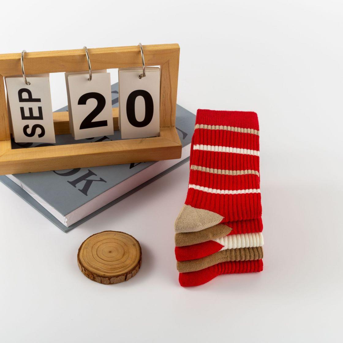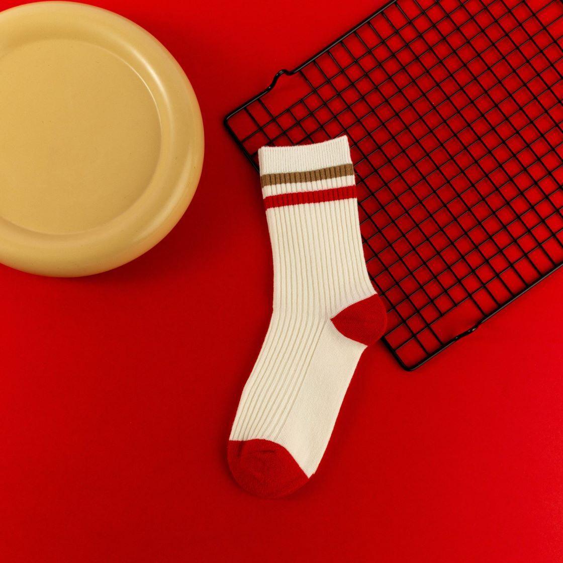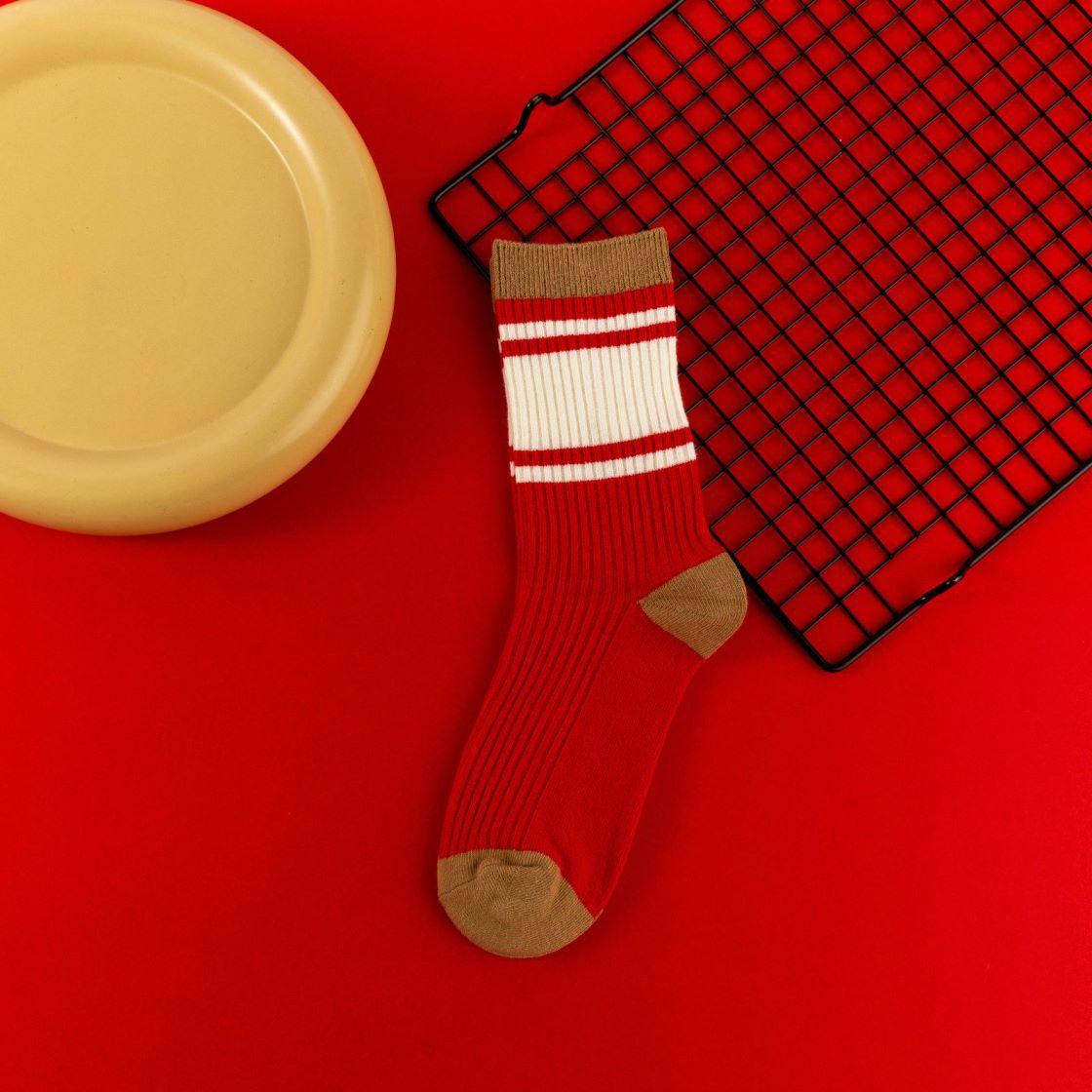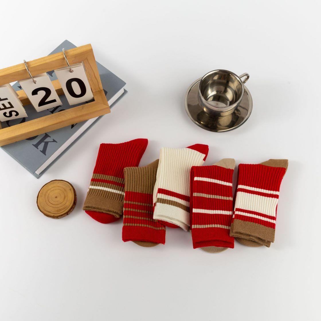 Nova chegada Ano Novo Vermelho Festivo Cano Alto Ano Novo Meias de Tamanho Médio Meias de Algodão Confortáveis Respiráveis Casamento Listrado All-match Feminino