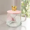 Caneca de café da manhã Crown Glass resistente ao calor para escritório com xícara de chá, xícara de café com leite e tampa e colher