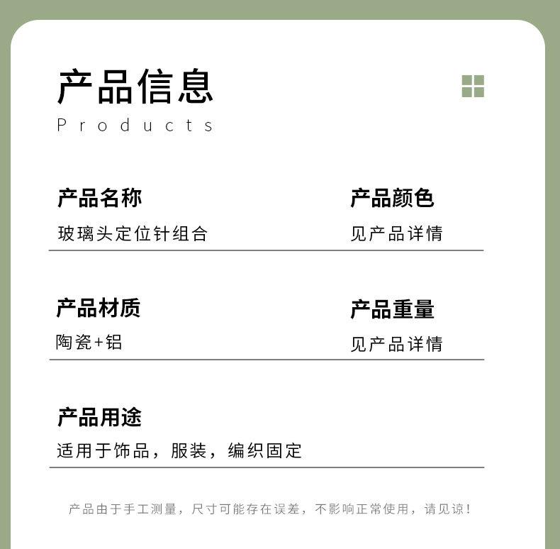 White glass head positioning pin 38mm 50/box, White glass head positioning pin 38mm 100/box, Colored glass hea...
