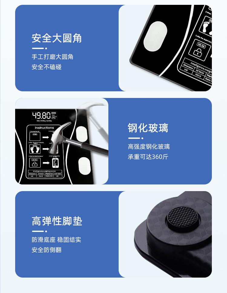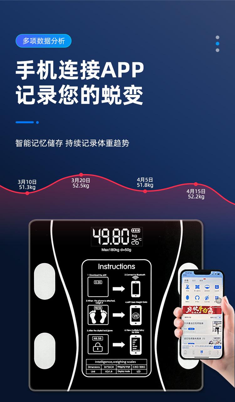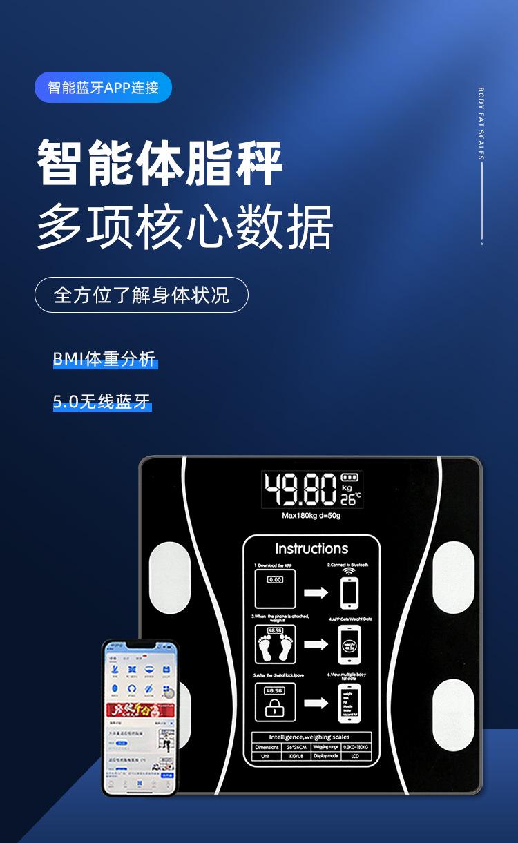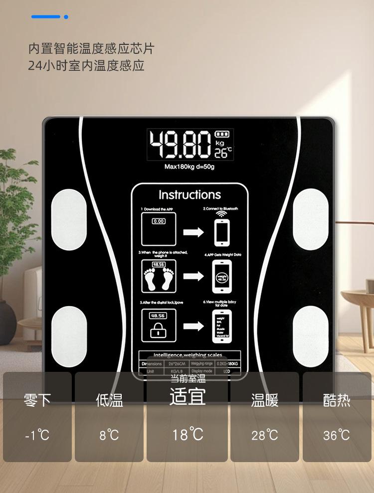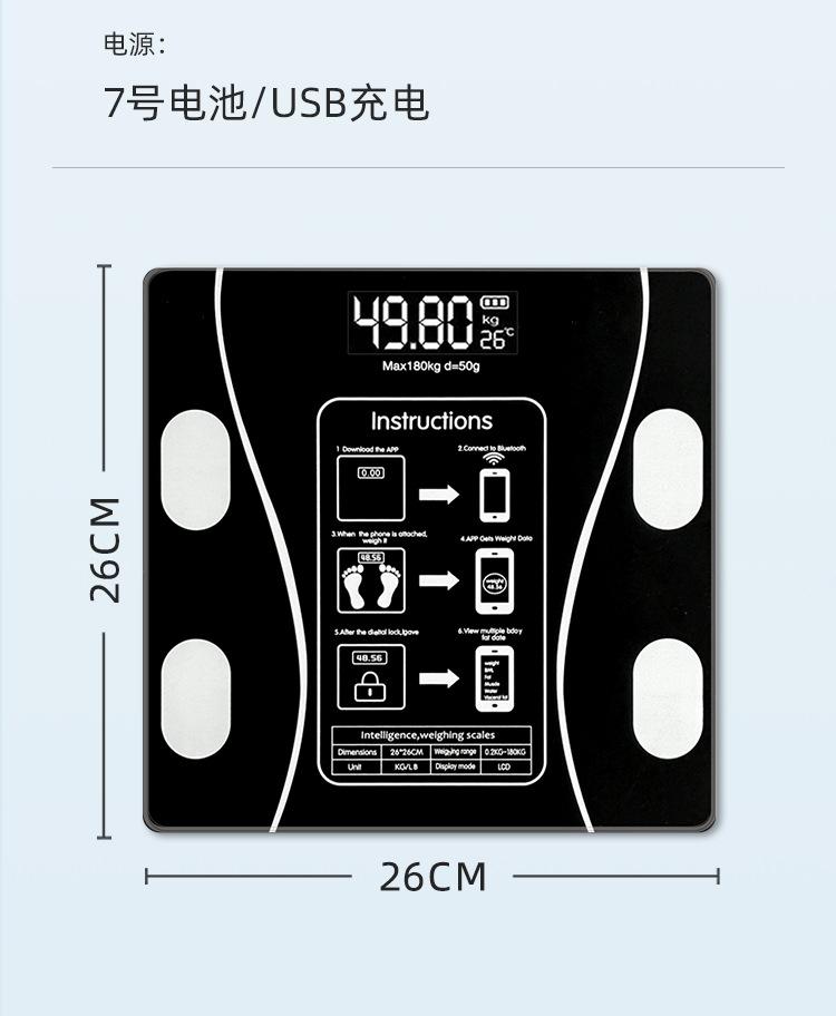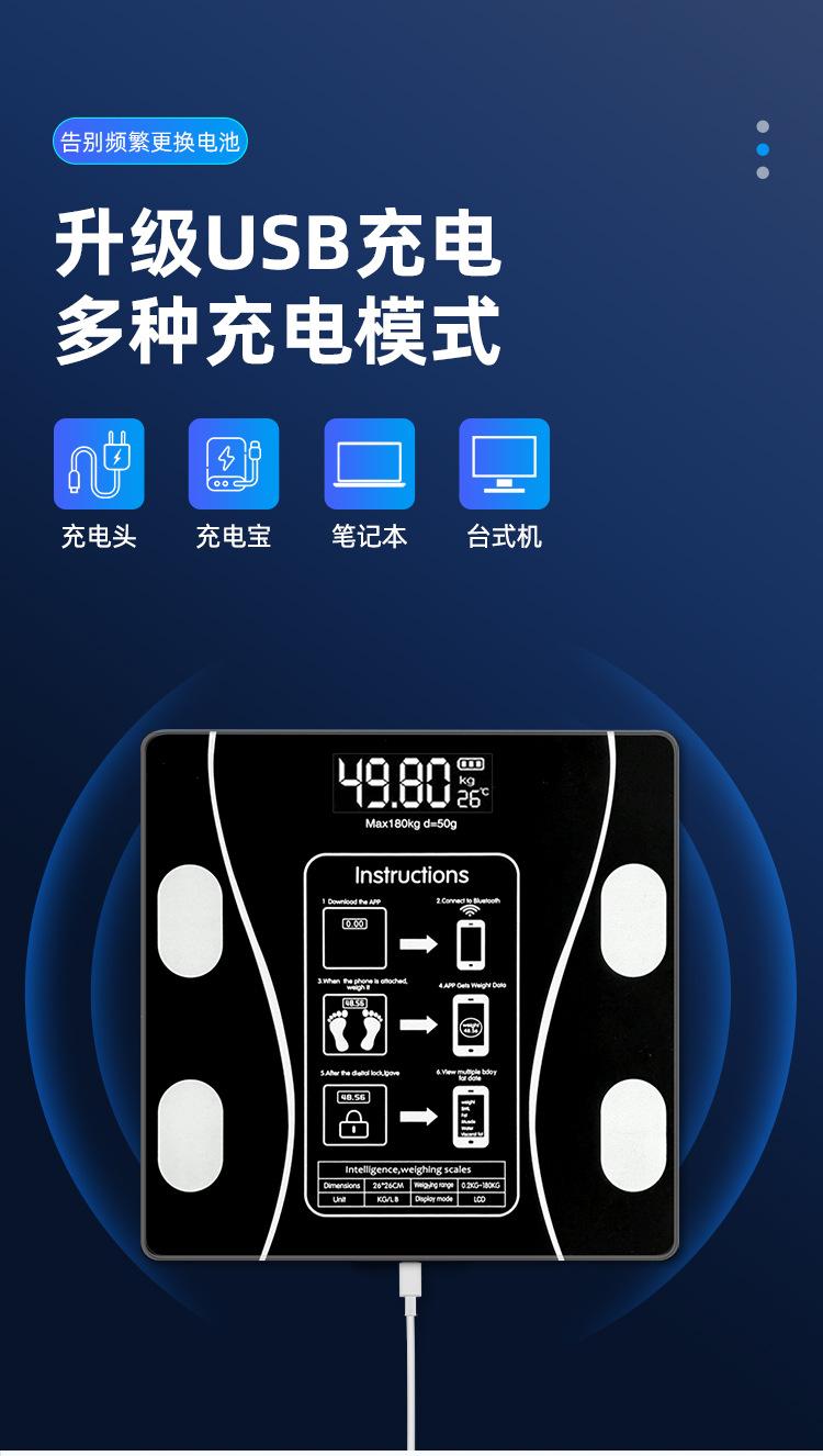 Balança de Gordura Corporal Transfronteiriça Aplicativo Bluetooth Balança Inteligente Balança Corporal Balança de Peso Carregamento USB Balança de Gordura Corporal Balança Digital de Alta Precisão