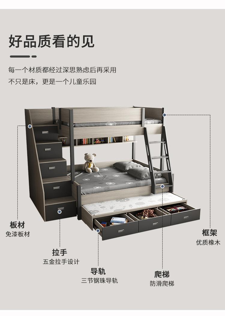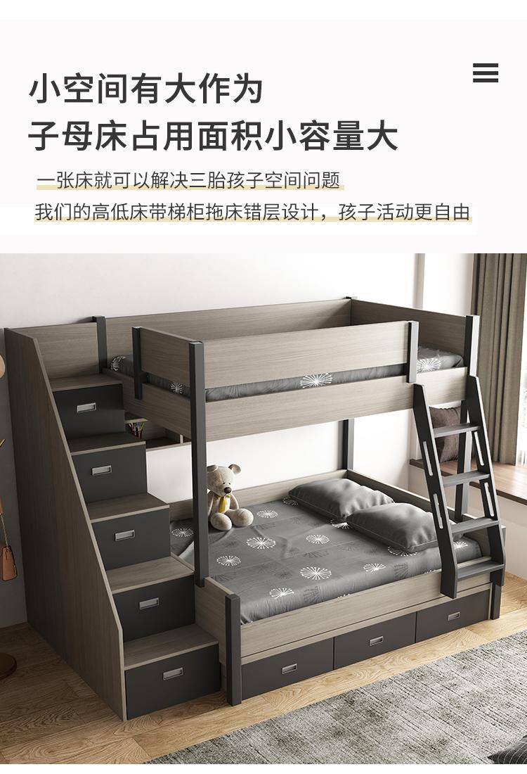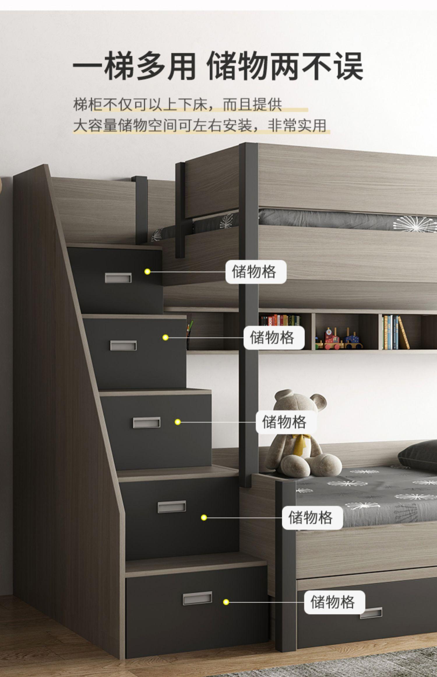 High and low bed + bookshelf + three-draw trailer bed + ladder cabinet