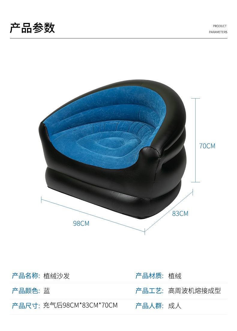 Fornecimento do Fabricante Sofá Inflável Preguiçoso Flocado Individual Assento de Lazer ao Ar Livre Reclinável com Encosto Inflável Atacado Portátil