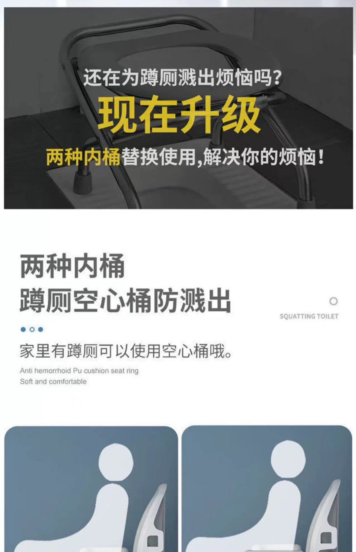 Adjustable room squat and pit dual use (solid bucket 1 + hollow bucket 1 + backrest)