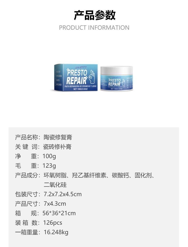 Jakehoe Pasta de Reparo Cerâmico Banheiro Cozinha Reparo de Azulejos Impermeável e Resistente ao Desgaste Artesanato Pasta de Reparo Doméstico