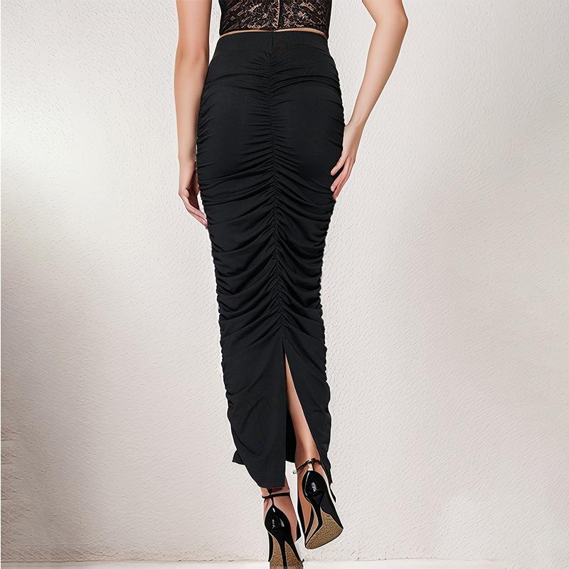Estilo europeu e americano 2024 primavera e verão nova moda feminina sexy cintura alta plissada apertada saia dividida nas costas