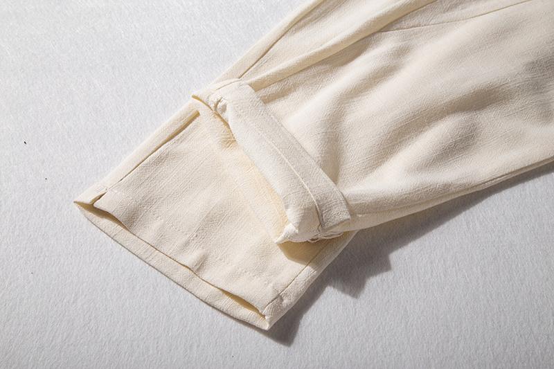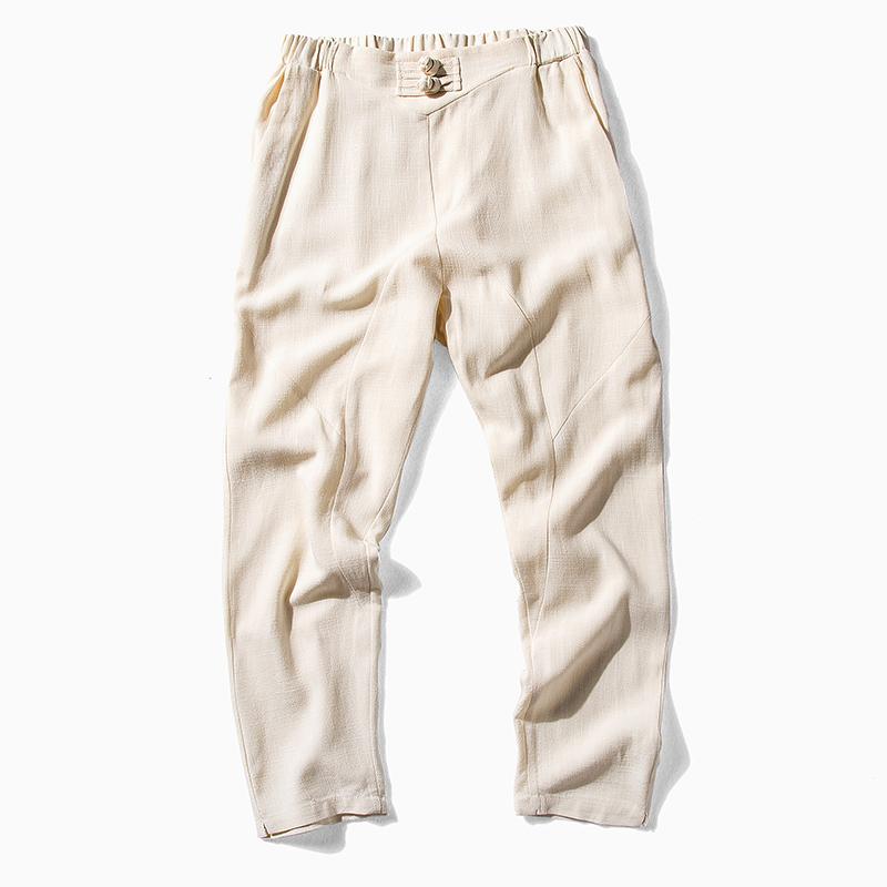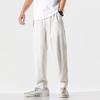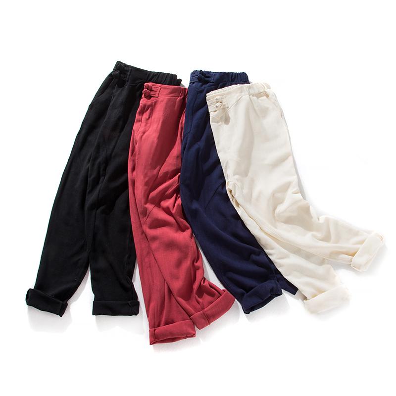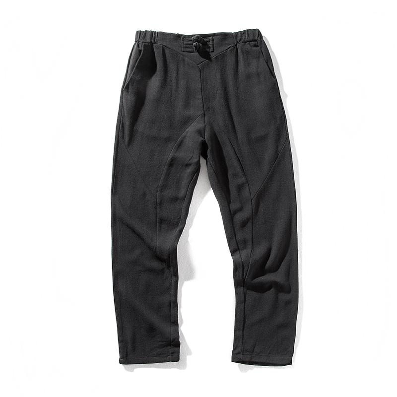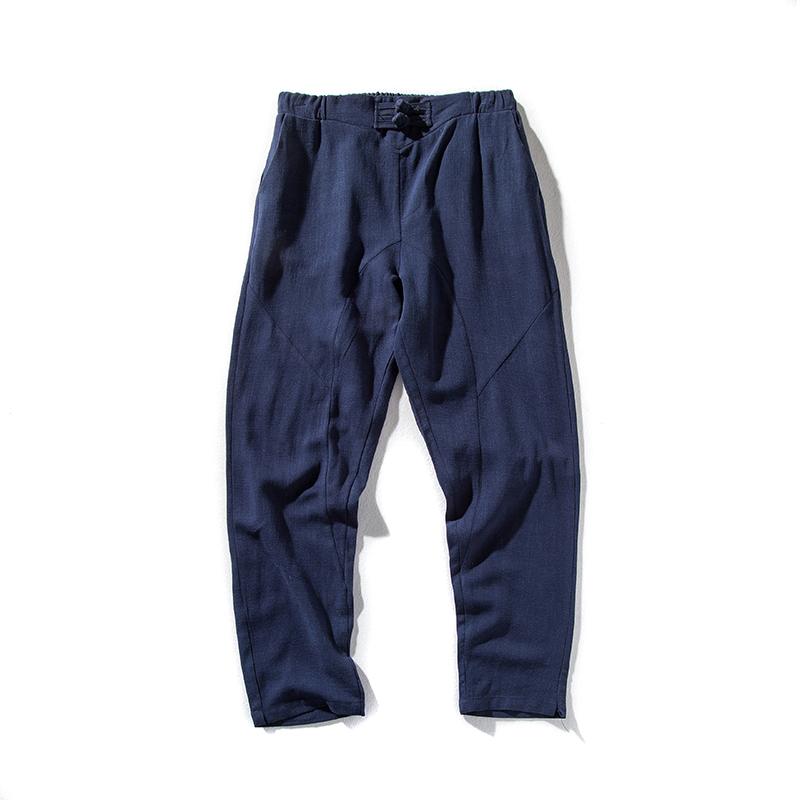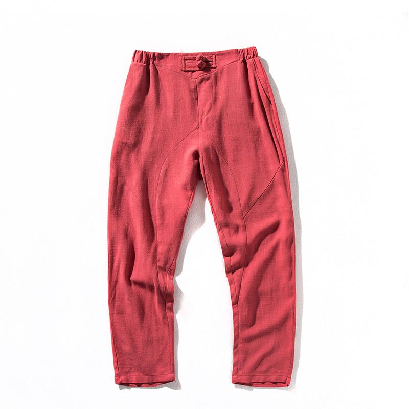 Calças casuais de algodão e linho estilo chinês de verão Calças masculinas de linho com fivela retrô Calças Harlan Calças de algodão e linho tamanho grande calças soltas