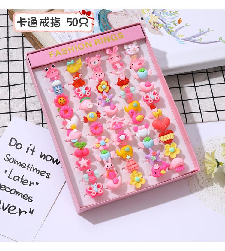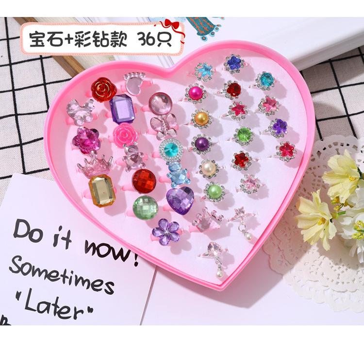 Anel infantil Brinquedo de gema da menina Desenho animado pequeno anel infantil Princesa Cristal Diamante Caixa de jóias Jóias