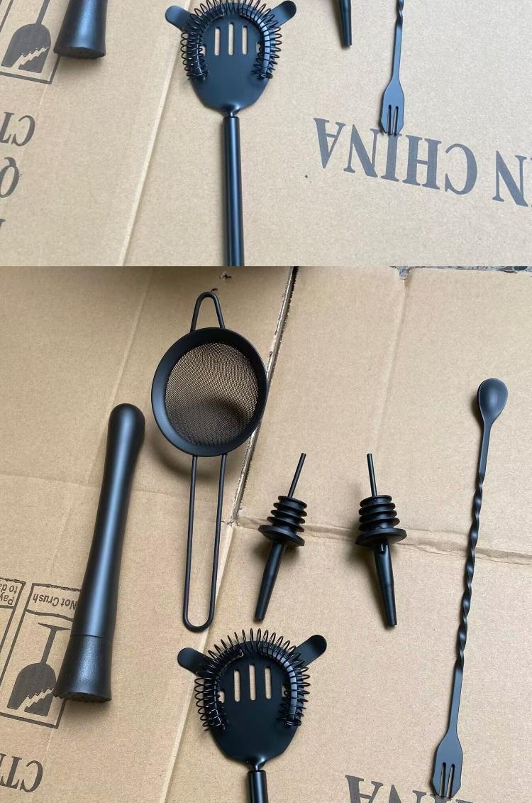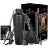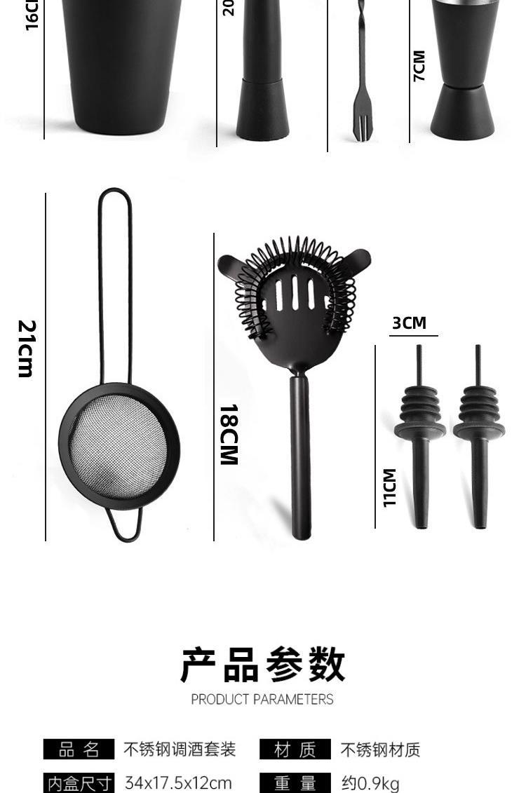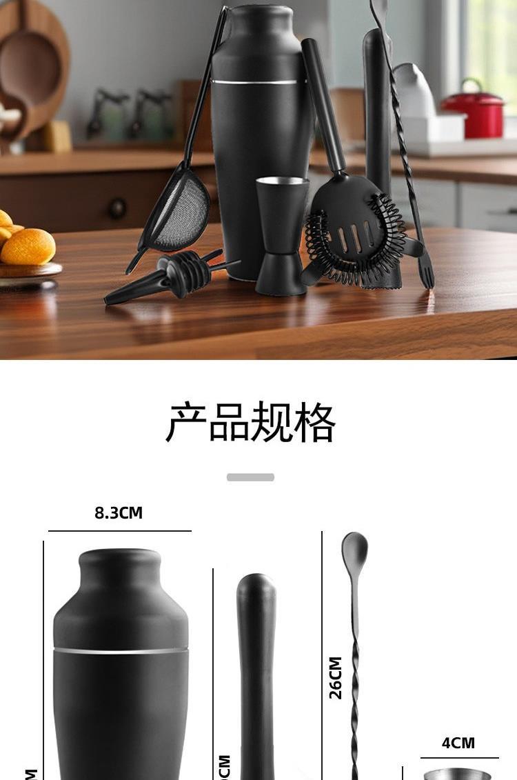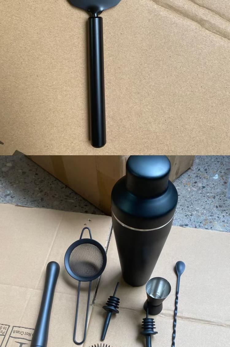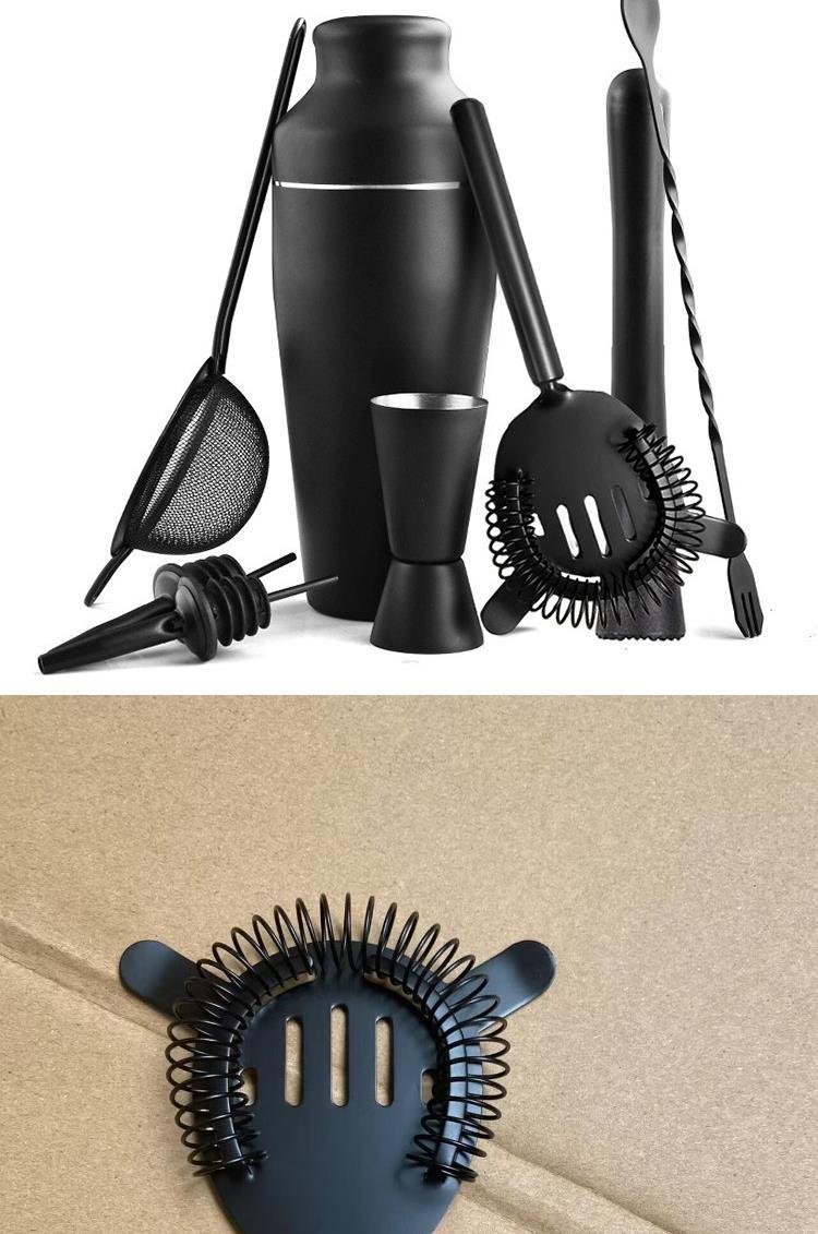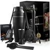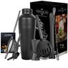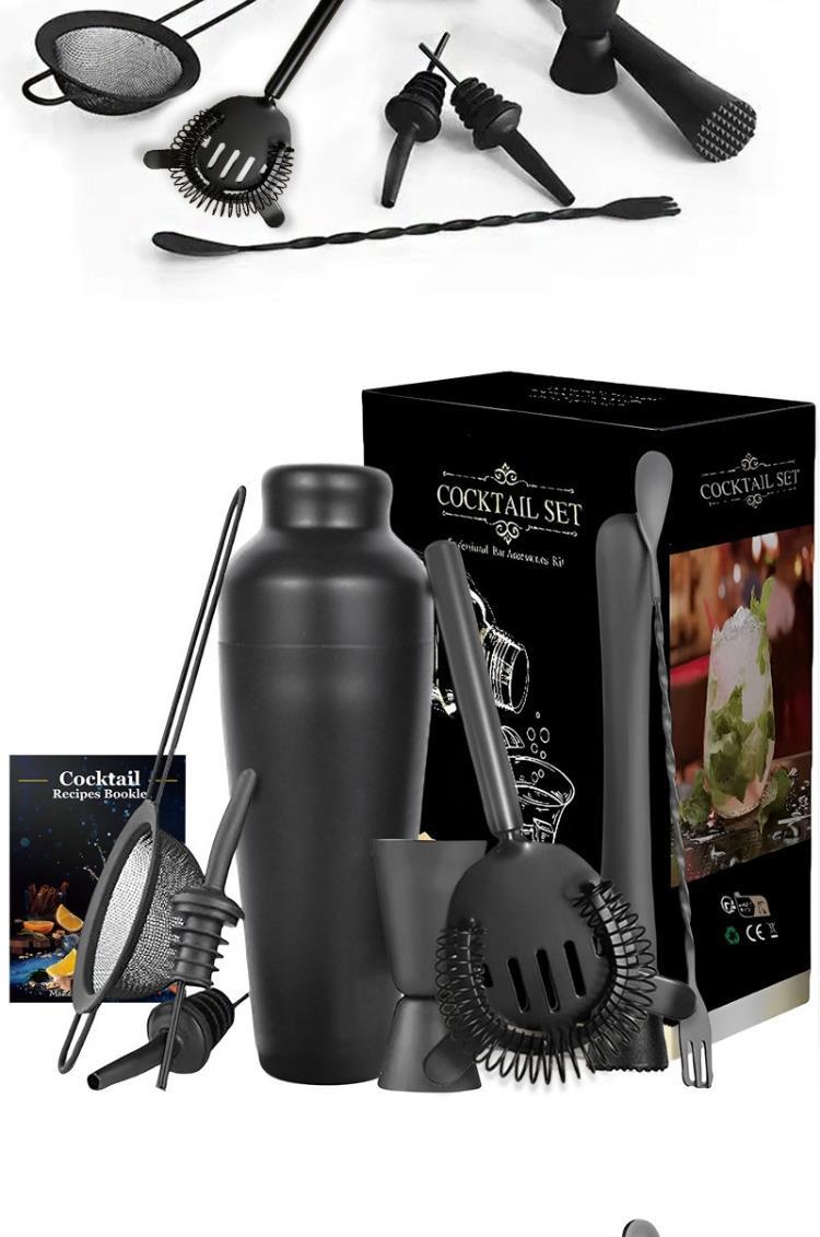 Black silver edge cocktail shaker set of 8, Black bartender 8-piece set, Black silver edge cocktail shaker 9-p...