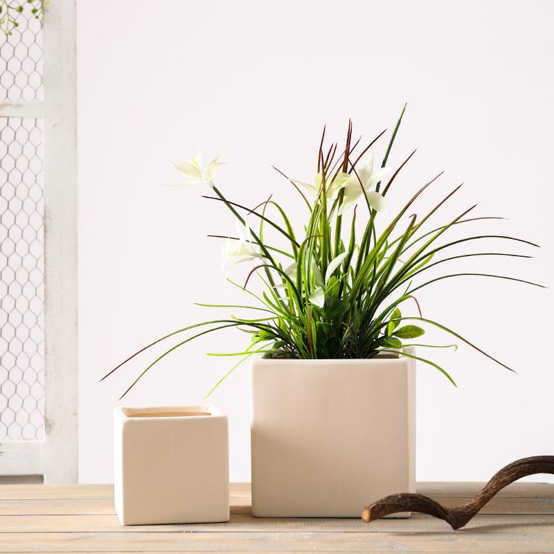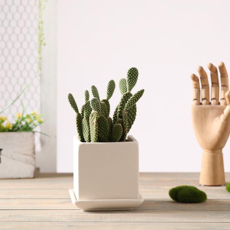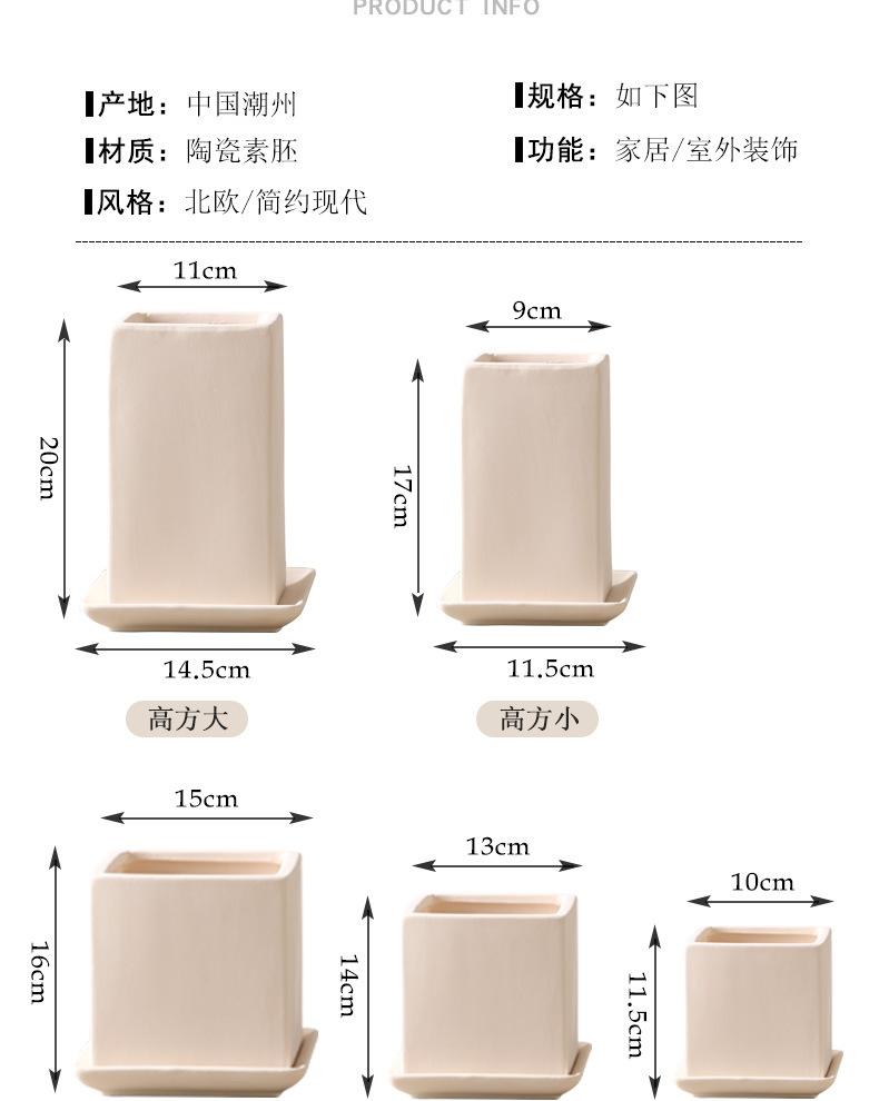 Simples Respirável Alto Quadrado Liso Queimado Argila Embrião Vaso de Flores com Bandeja Absorvente Cerâmica Bruta Carnudo Verde Planta Cavalheiro Orquídea