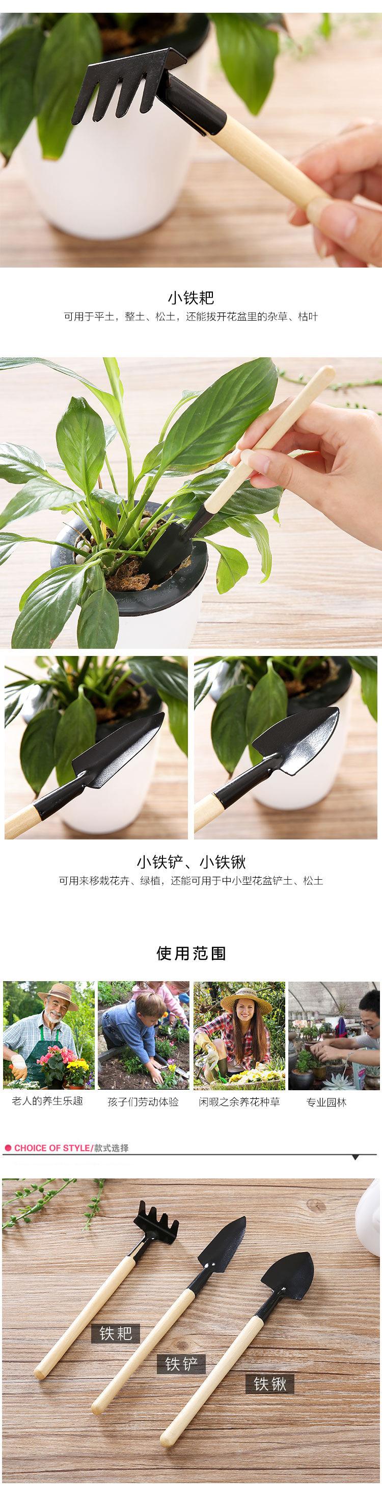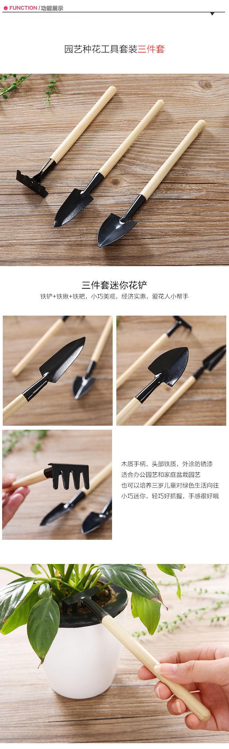 Conjunto de ferramentas de jardinagem de três peças espessas para plantar flores, pá de escavação, pá de vegetais, ancinho de enxada, ferramenta de plantio de suculentas em vaso pequeno