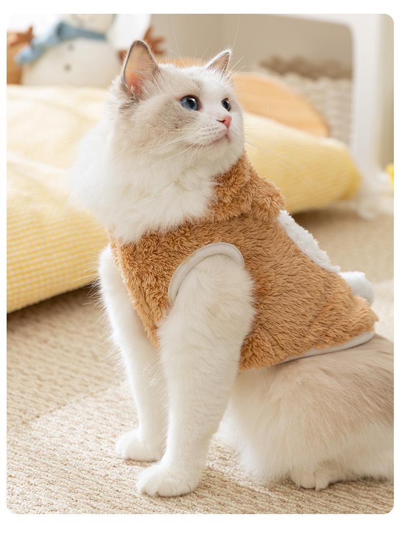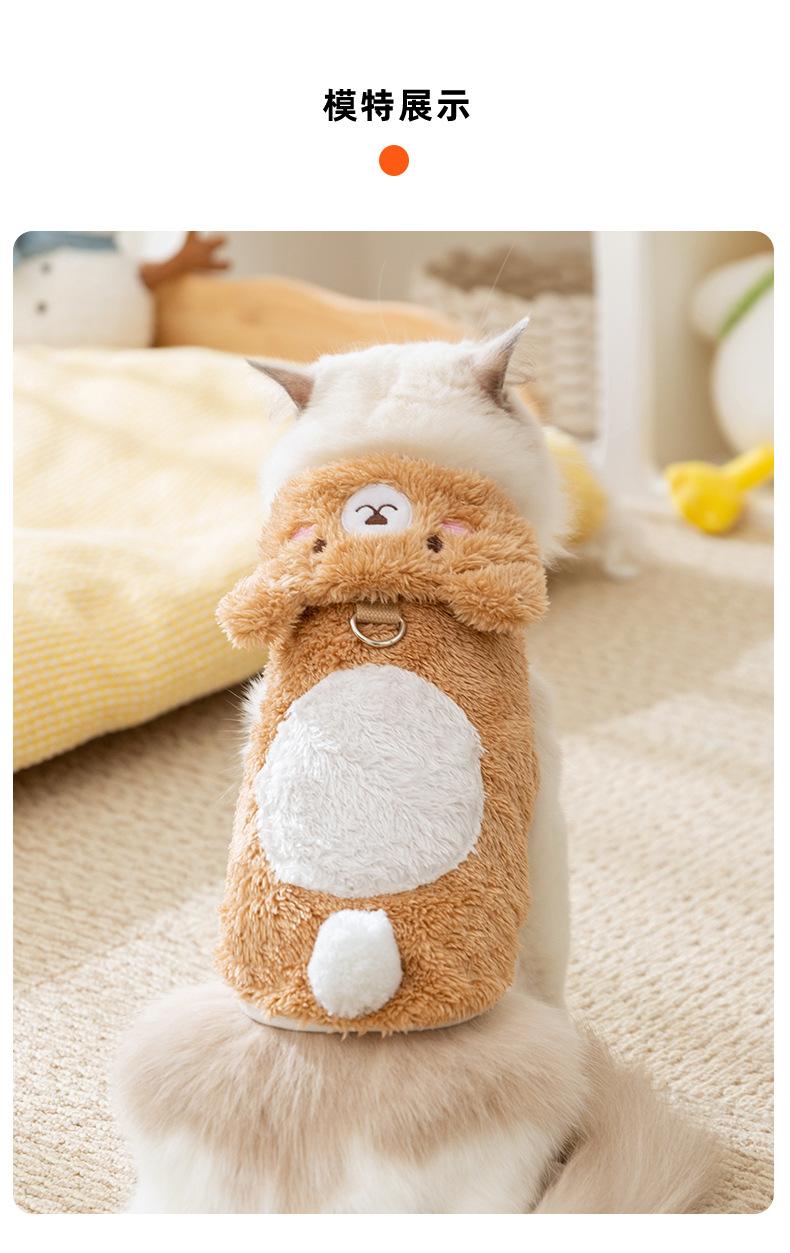 Marrom bonito vento pequeno animal transformação com capuz Halloween casa duas pernas sem mangas roupas de gato de estimação atacado