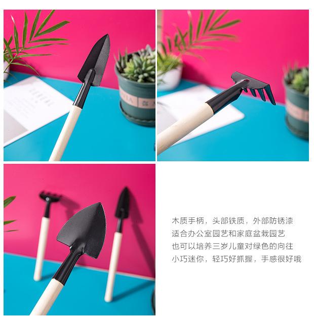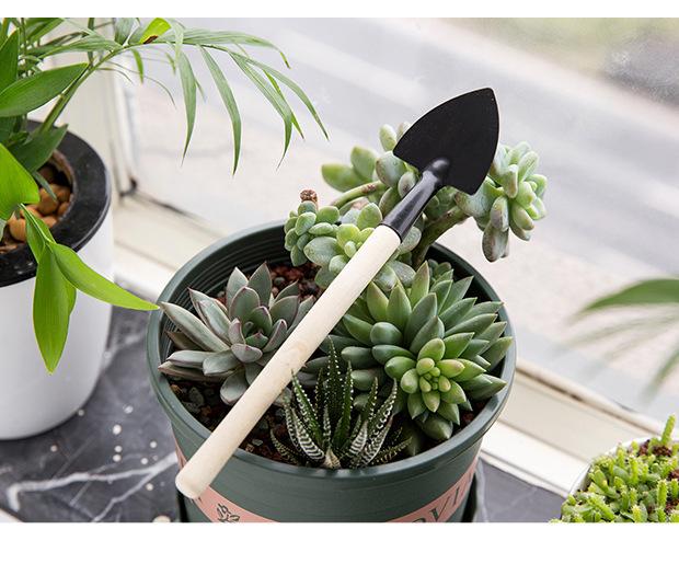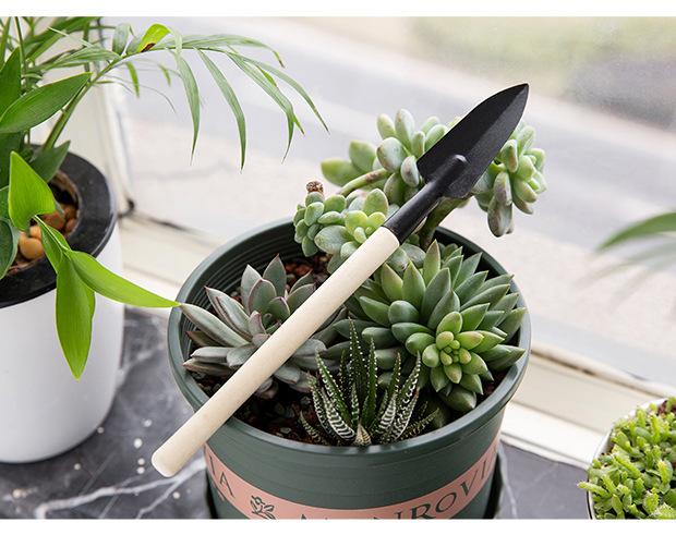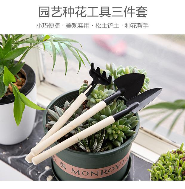 Pá de jardinagem Conjunto de três peças Grande vaso de planta Pequena pá Jardim Flores interiores Pine Solo Plantação de flores e vegetais Ferramentas pequenas
