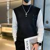 Outono e inverno suéter masculino falso suéter de malha de duas peças base camisa costura suéter de lapela