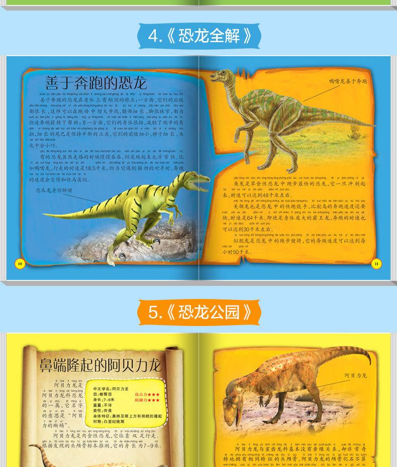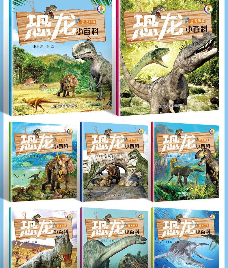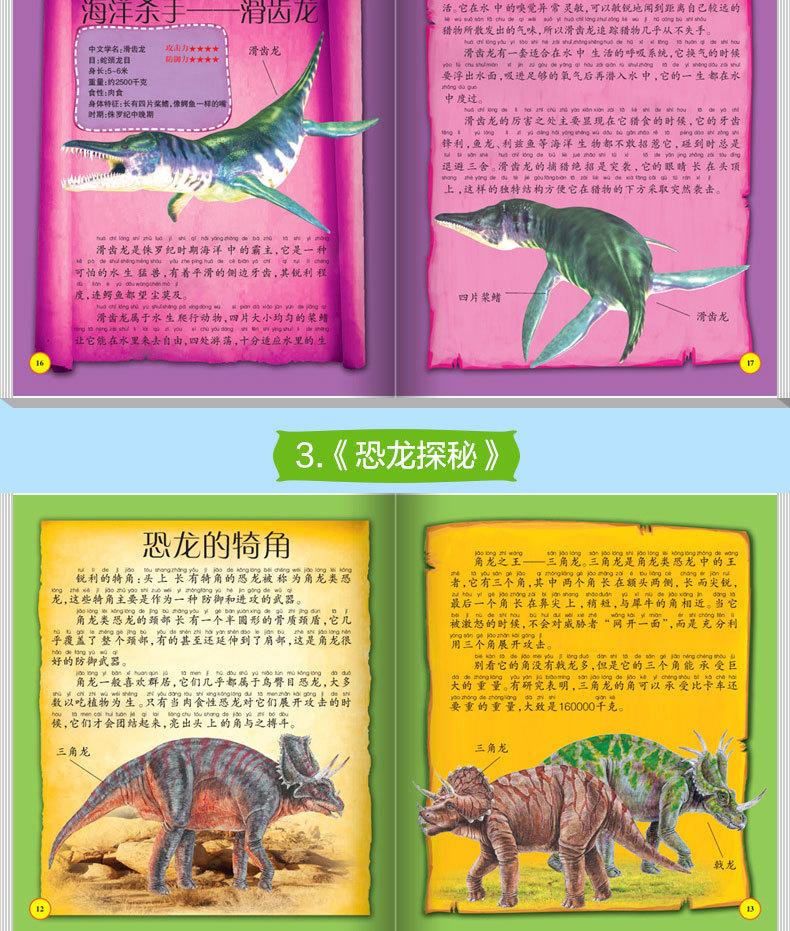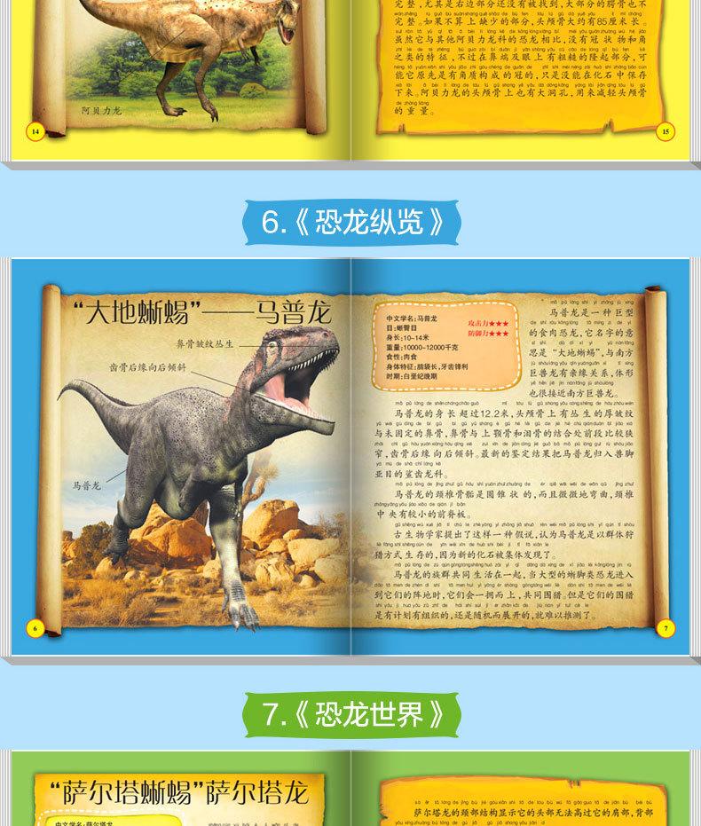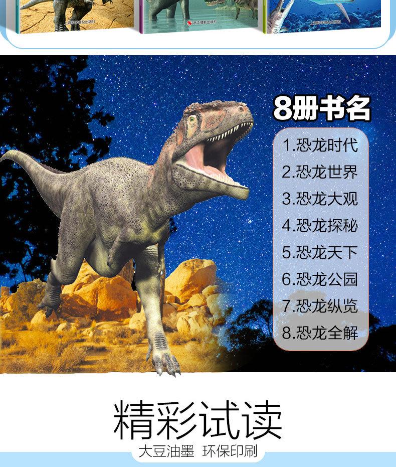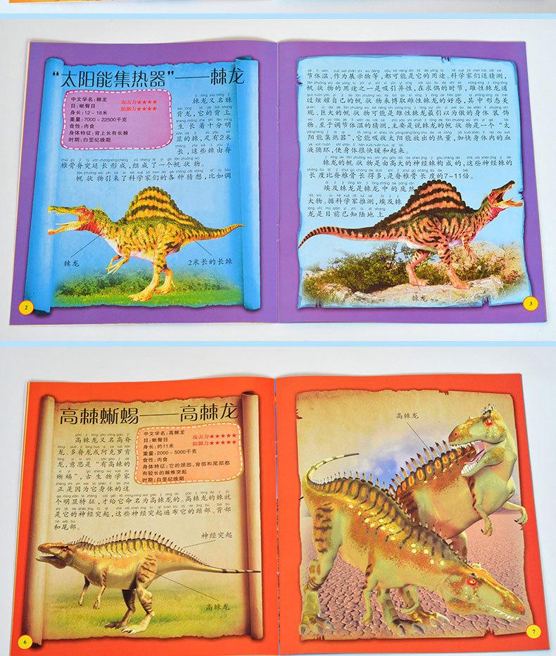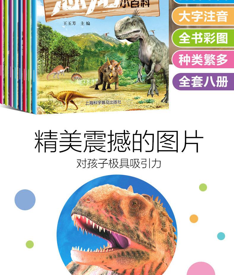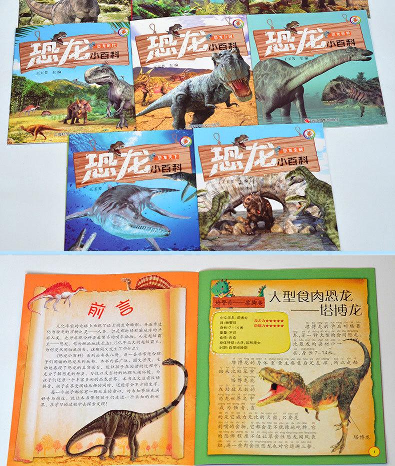 Enciclopédia dos Dinossauros da Era dos Dinossauros, conjunto de 8 volumes com notação fonética e ilustrações coloridas para livros infantis no atacado