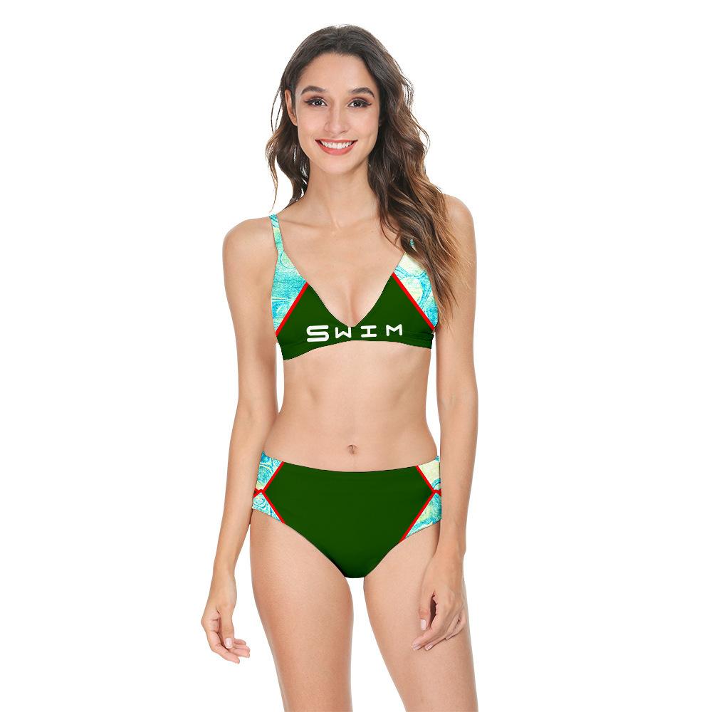 Novo padrão de diamante transfronteiriço de três pontos europeu e americano sexy biquíni maiô split underwear roupas femininas